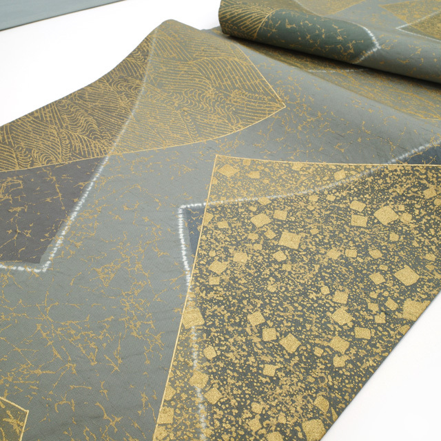 金彩加工や絞りを使用して 色紙重ね文様が染められています。