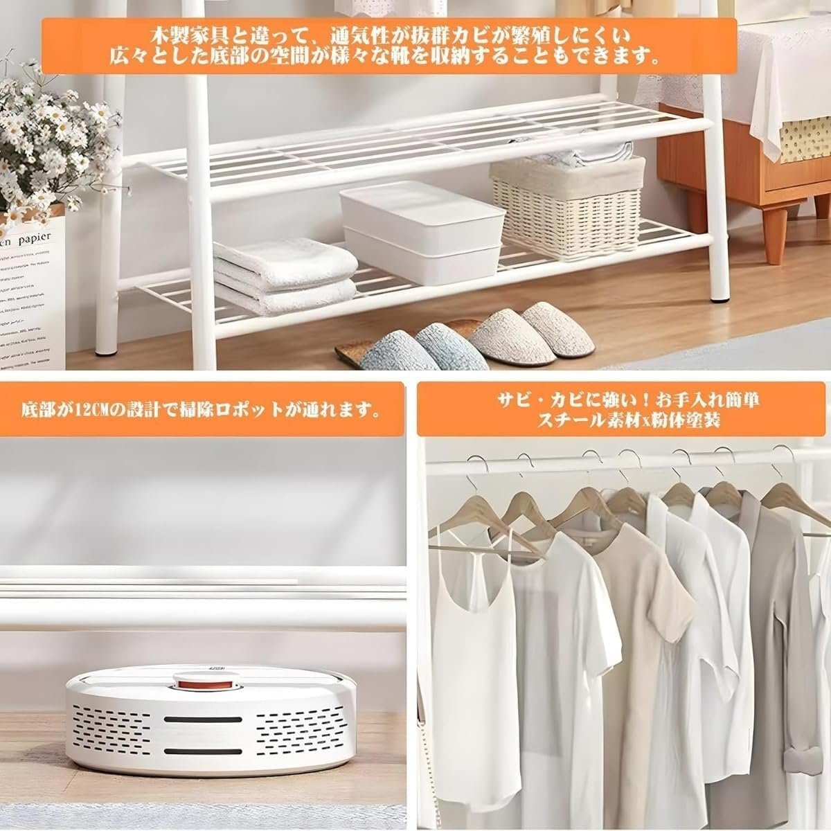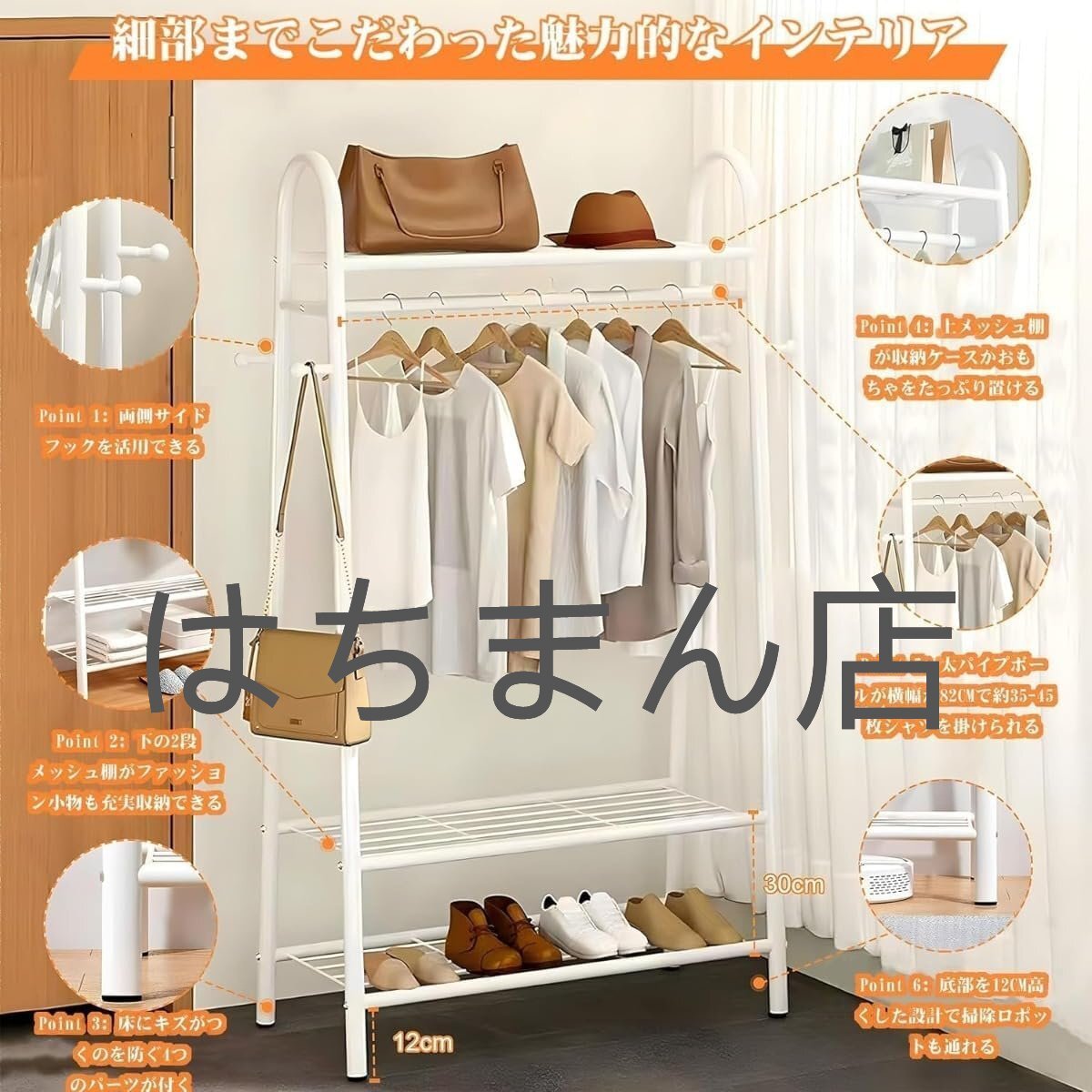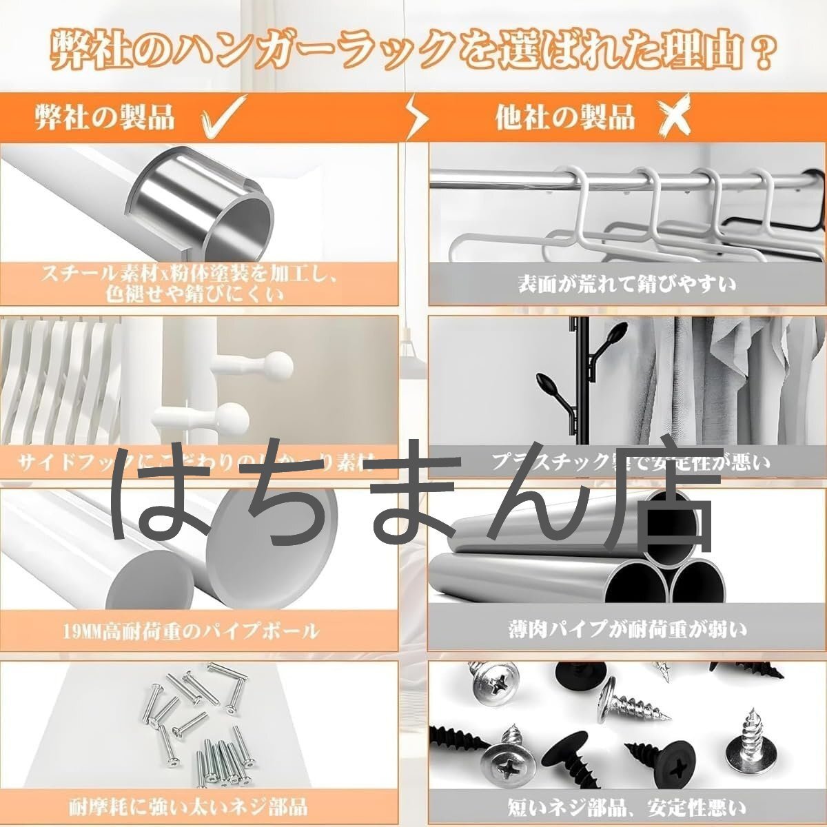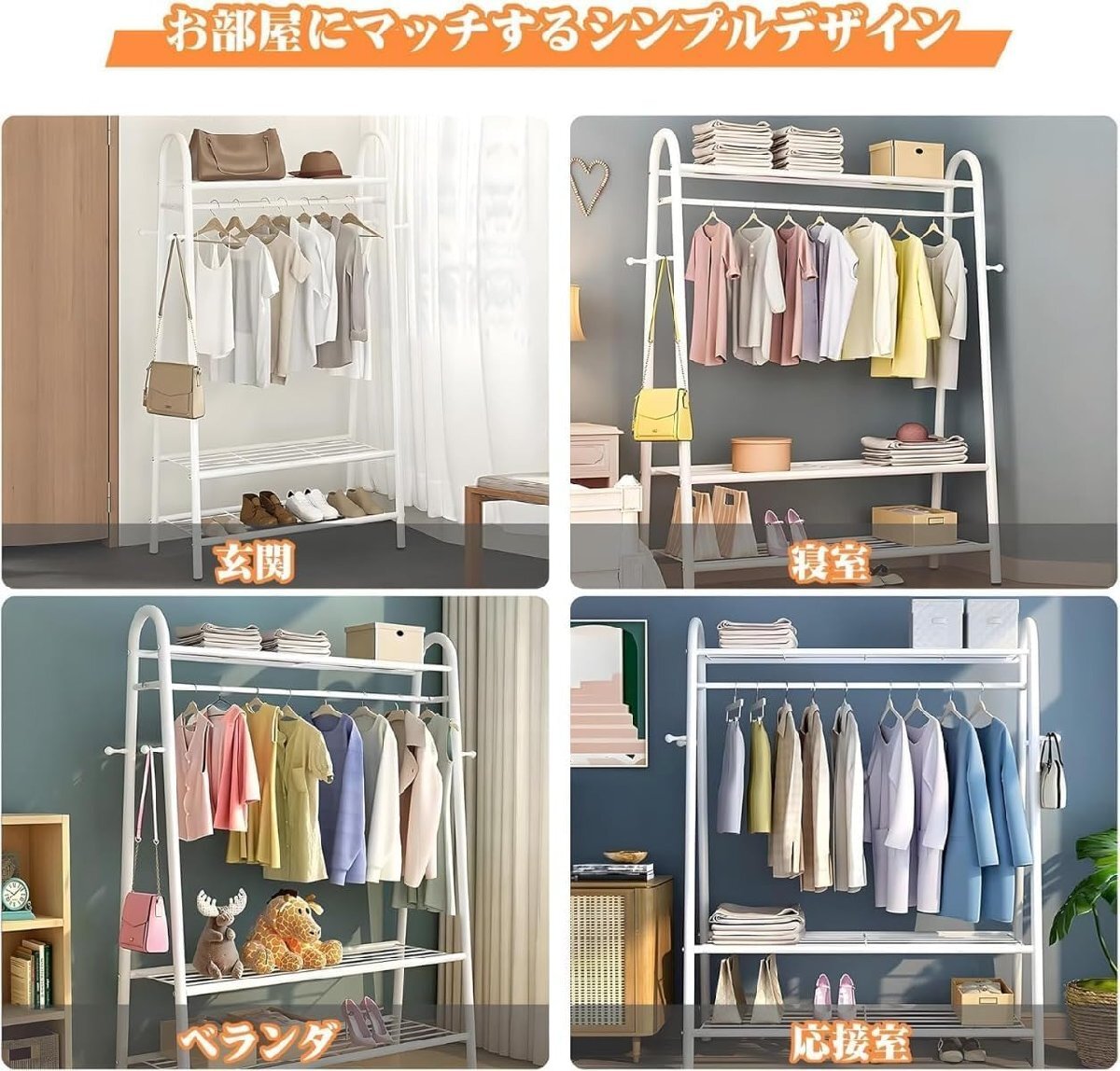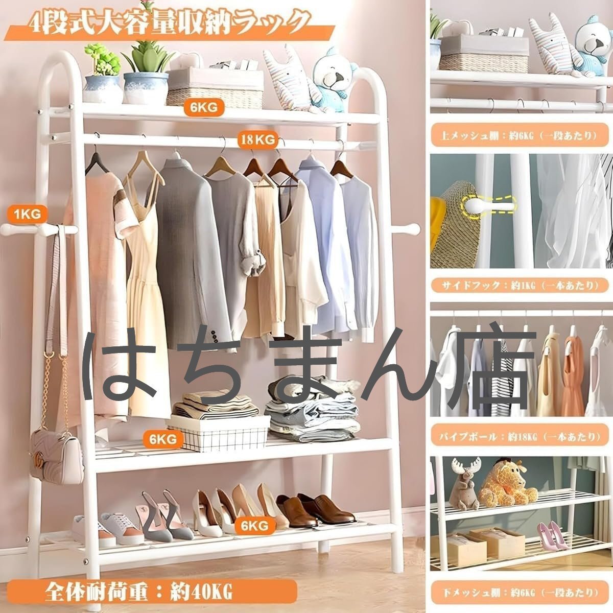 幅材質:鋼(粉体塗装)、防錆、防錆仕様です。収納、弔り、ハンガー:このハンガーは最新のチューブ型ハンガーシリーズで、上の3段のメッシュハンガーは薄い布団や収納ケースから靴、タオルや小物まで自由に収納できます。