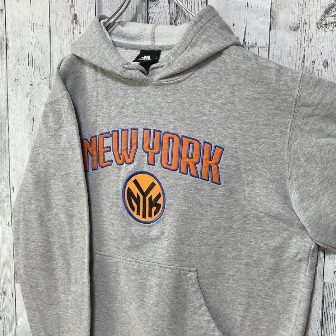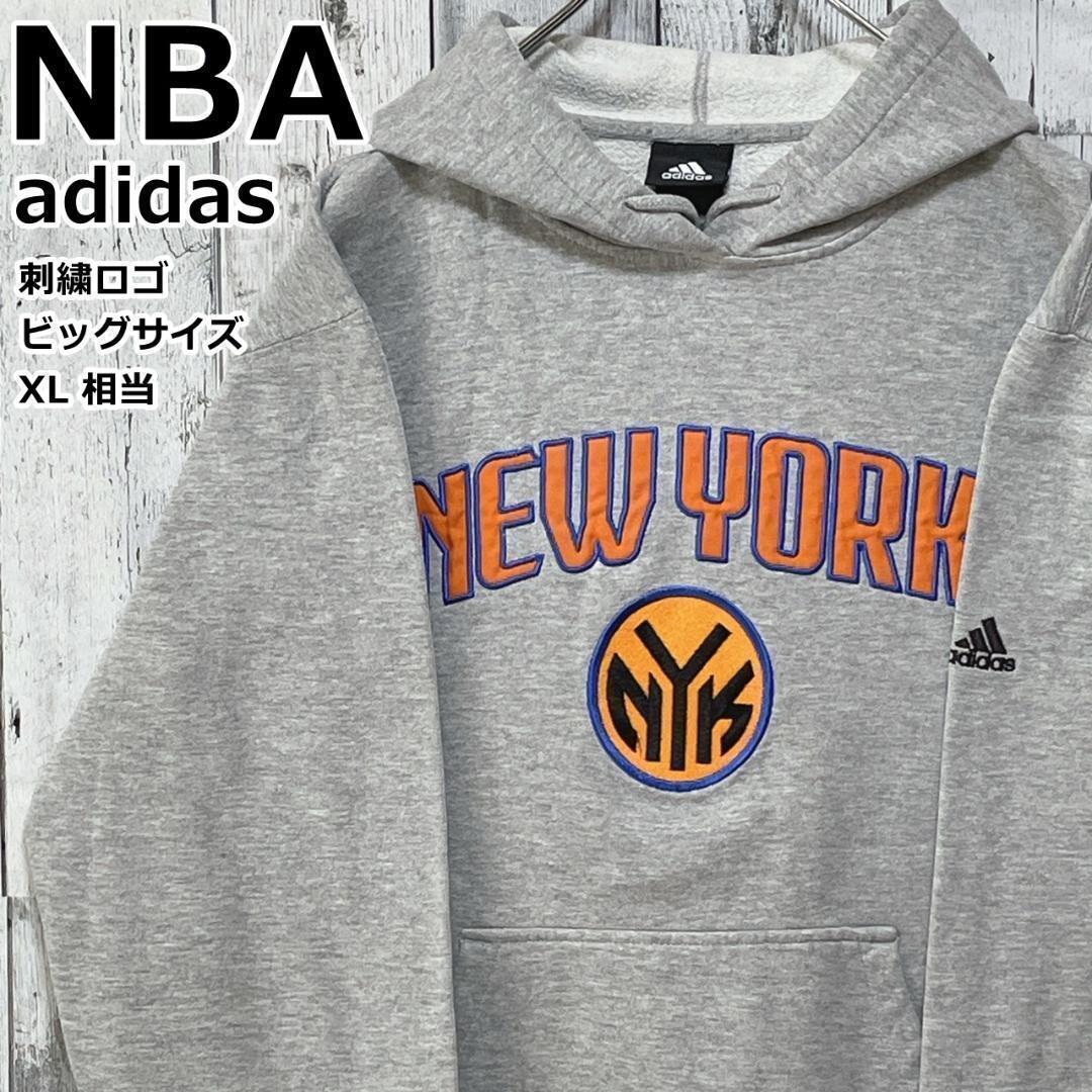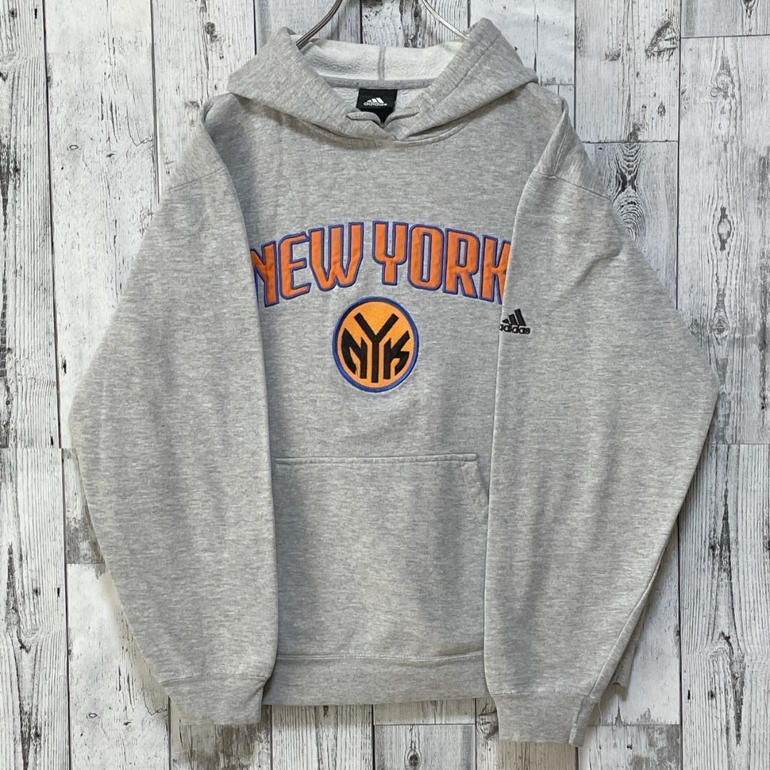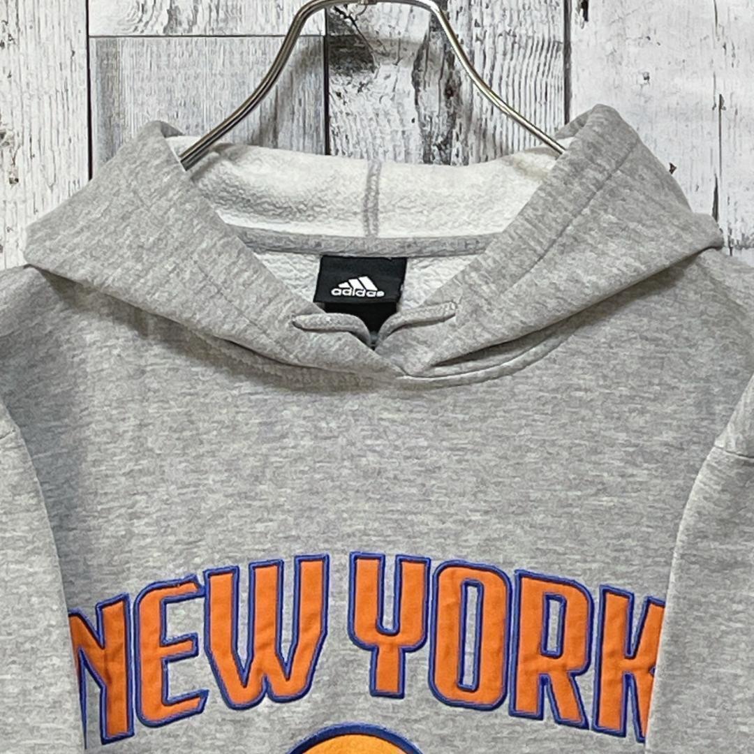 NBAニューヨーク・ニックス adidas アディダス 刺繍ロゴ ビッグロゴ アーチロゴ 日本サイズXL相当 90s プルオーバー パーカー フーディー