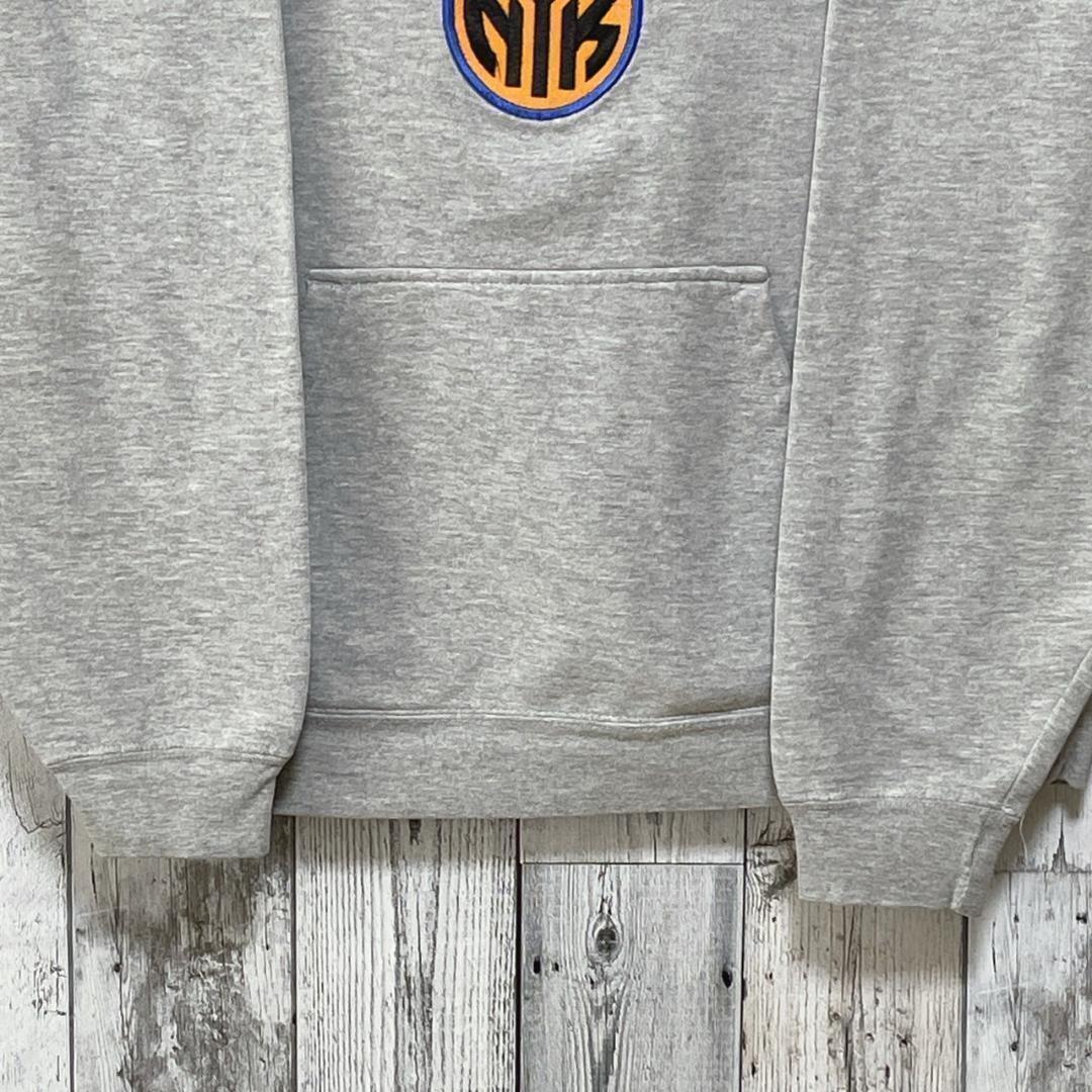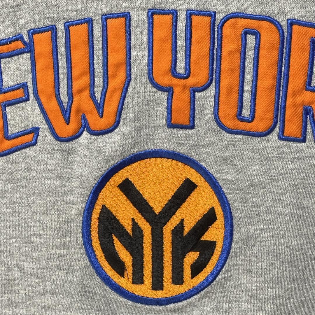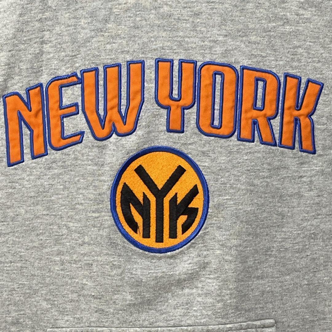 90sスタイルのリバイバル、古着スポーツMIXで大人気のadidasアディダス×NBAニューヨーク・ニックス(NYK)の刺繍ロゴ・ビッグロゴ・チームロゴ・サイドロゴ入りプルオーバーパーカー、フーディーです。