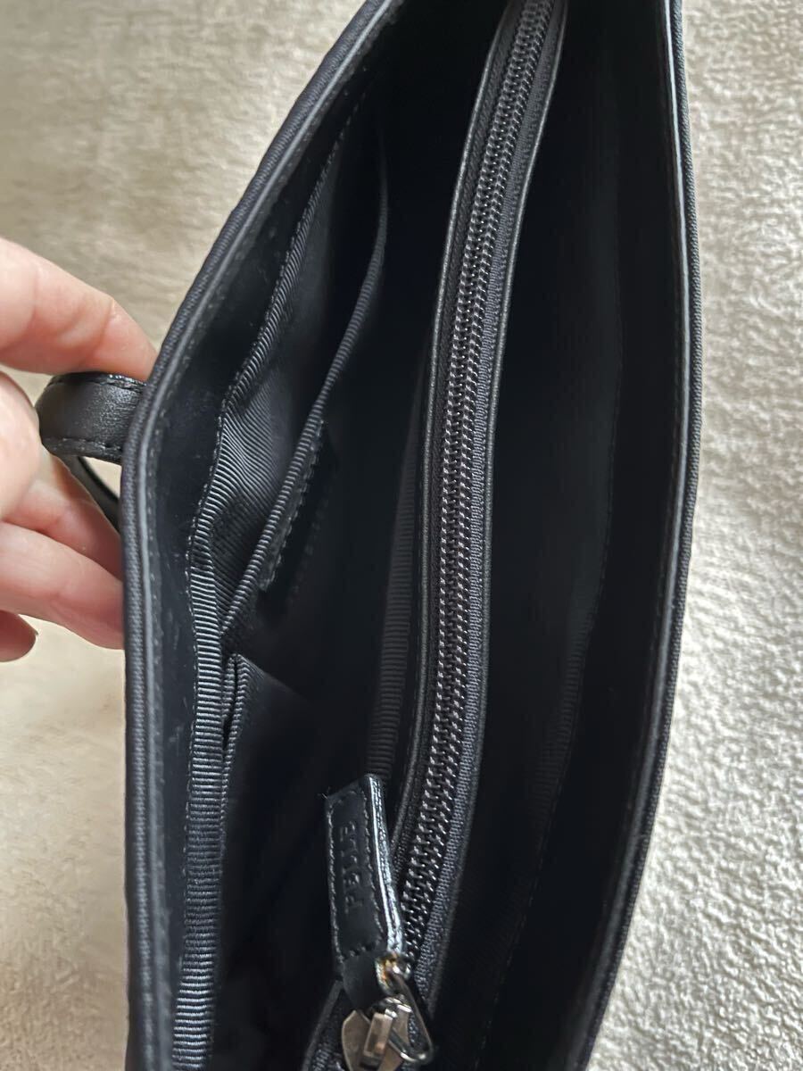 肩掛け出来ます。マットな金具で全面黒ですので冠婚葬祭 フォーマル対応できます。