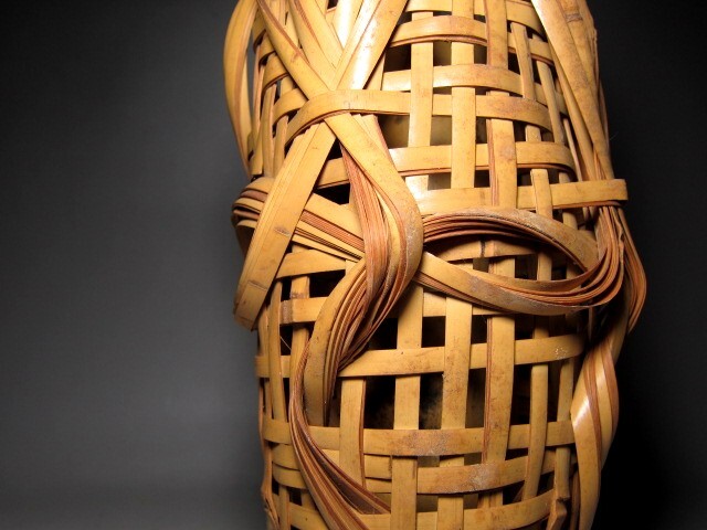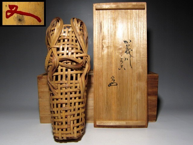 竹篭花入 「加茂川」 裏千家十二代 又妙斎花押      e571