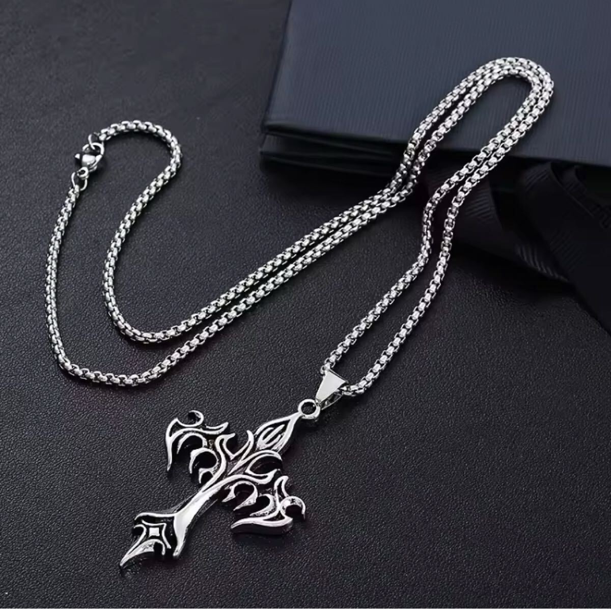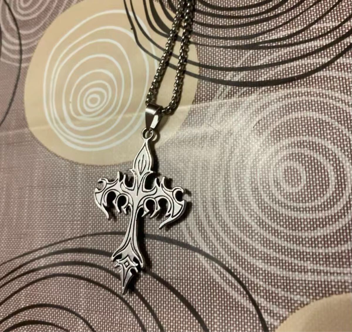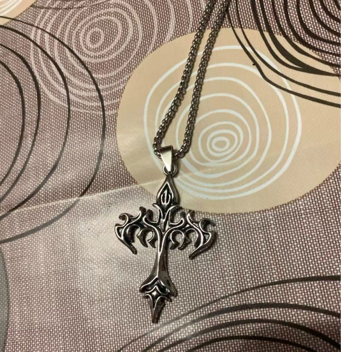 80年代、90年代流行っていたレトロなデザインのステンレススチール製のクロスペンダントと60cmのチェーンが特徴のネックレス。