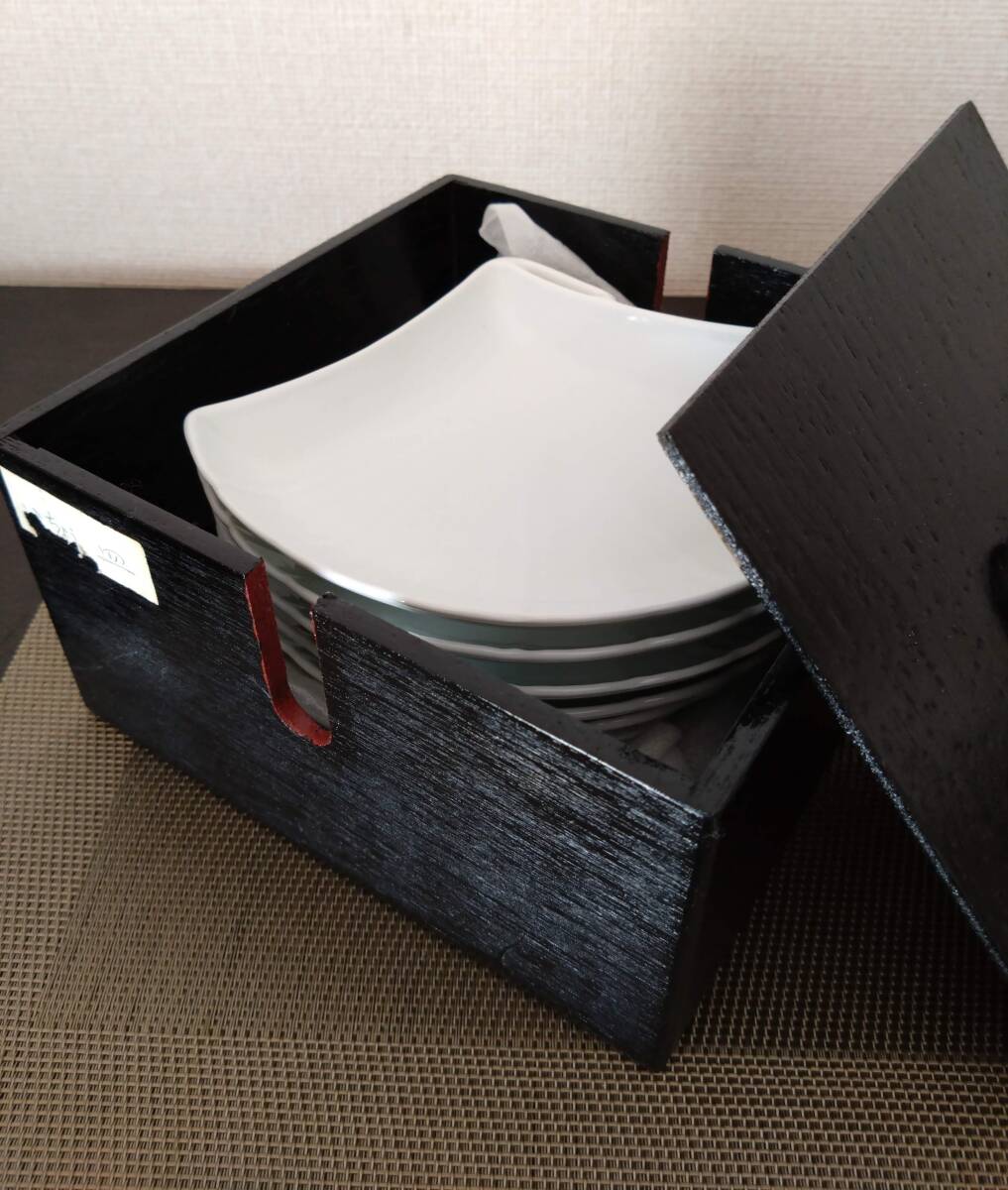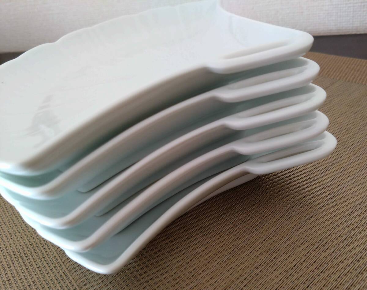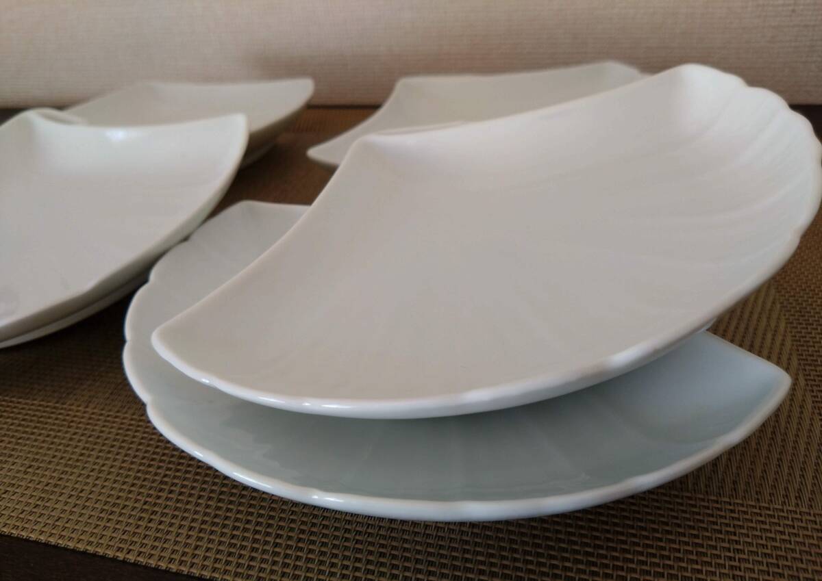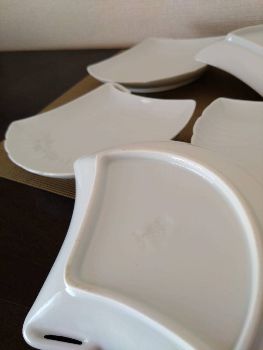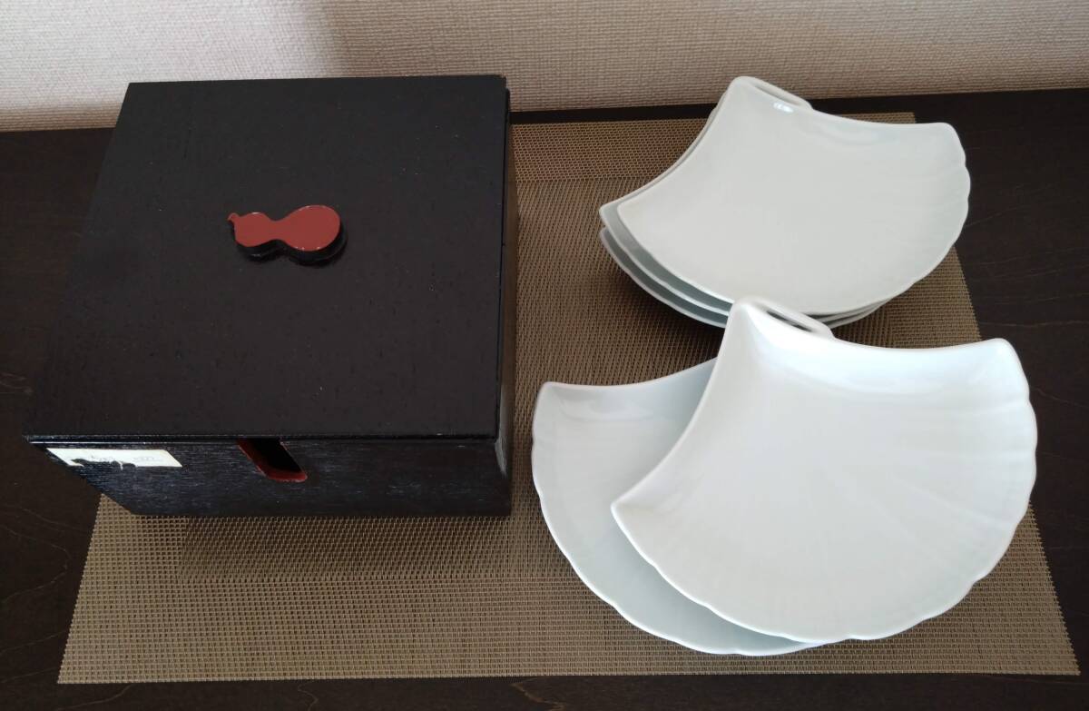 有田焼 錦右衛門窯 菓子皿 お皿 銘々皿 白磁 イチョウ型 5客揃 収納箱付
