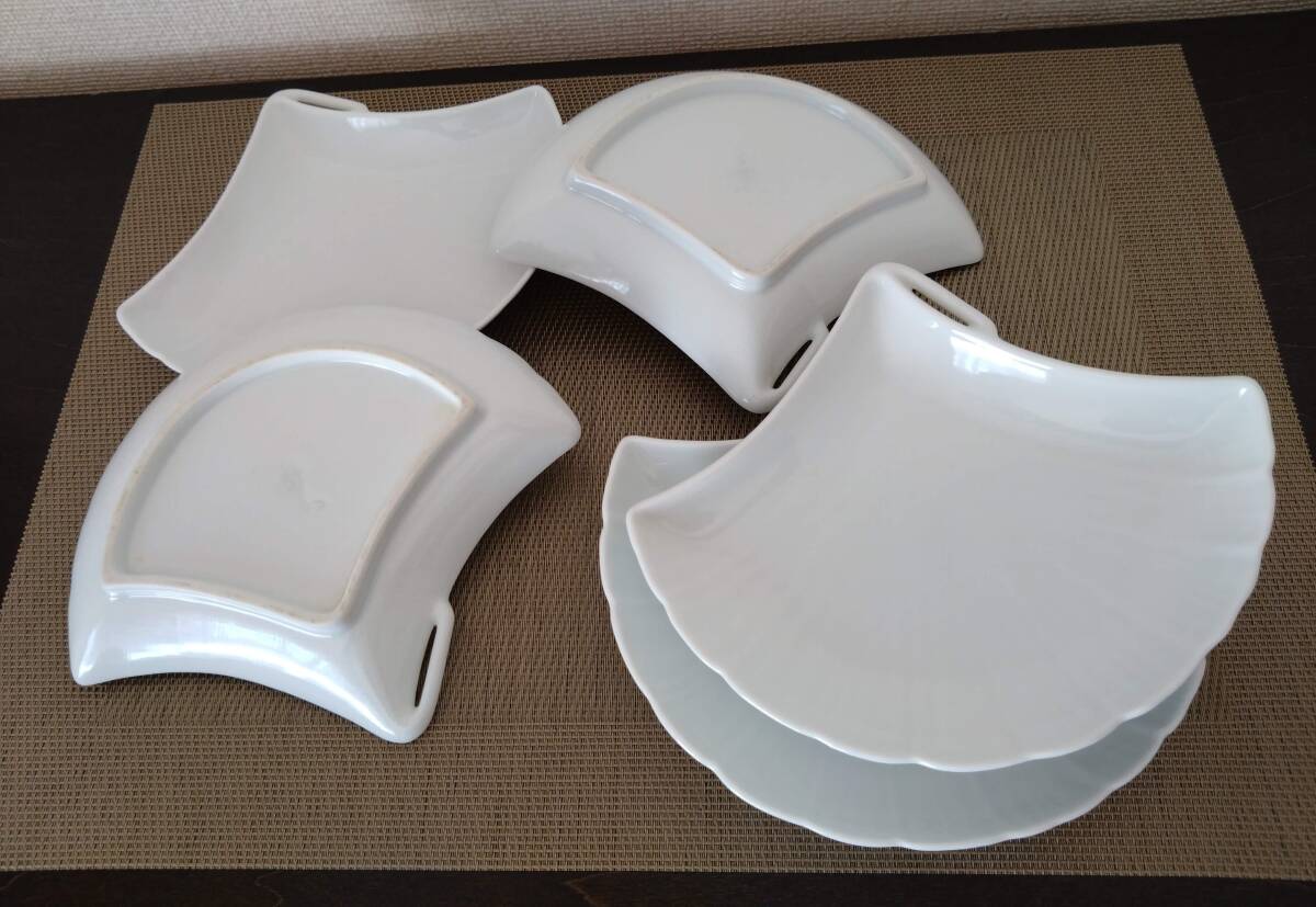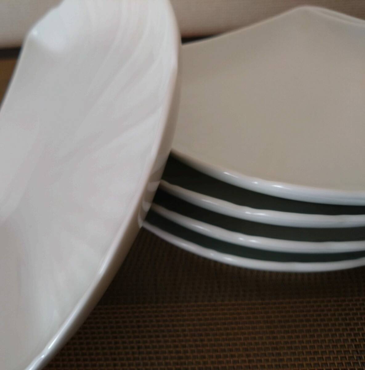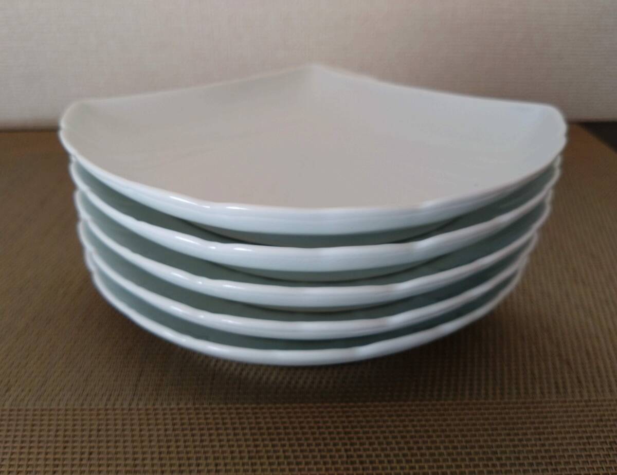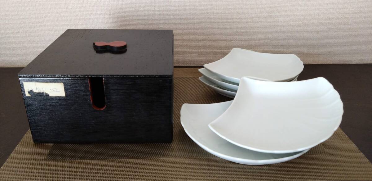 有田焼 錦右衛門窯 菓子皿 お皿 銘々皿 白磁 イチョウ型 5客揃 収納箱付  №2 ##