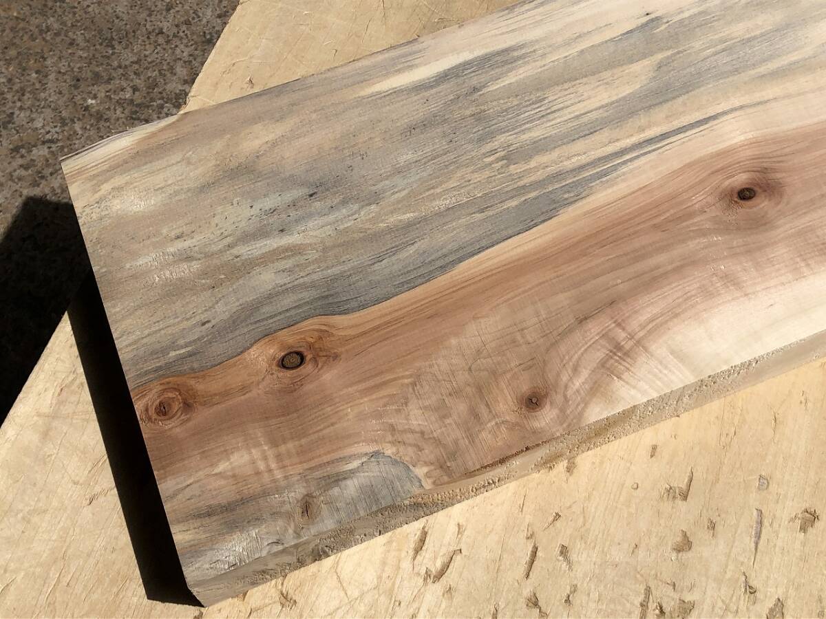 送料無料!栃【Y110B】587×253~265×37mm 橡 トチ ブルーステイン 素材 乾燥材 木工 DIY 材木 木材 天然木 無垢材《銘木すずめや》