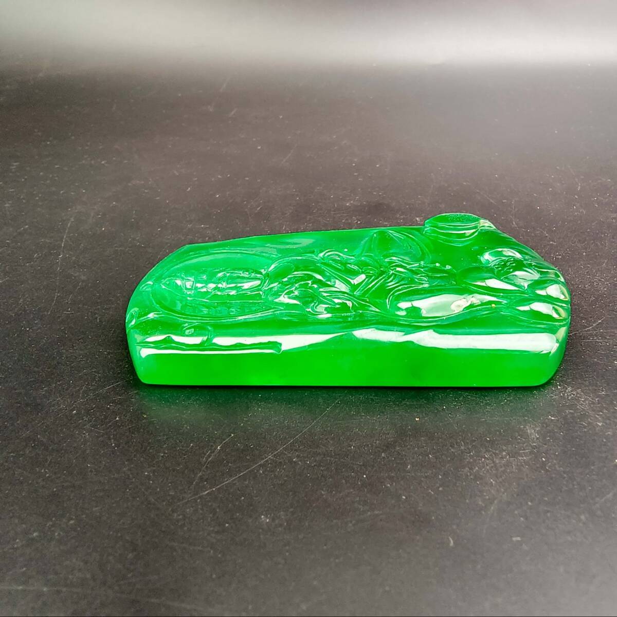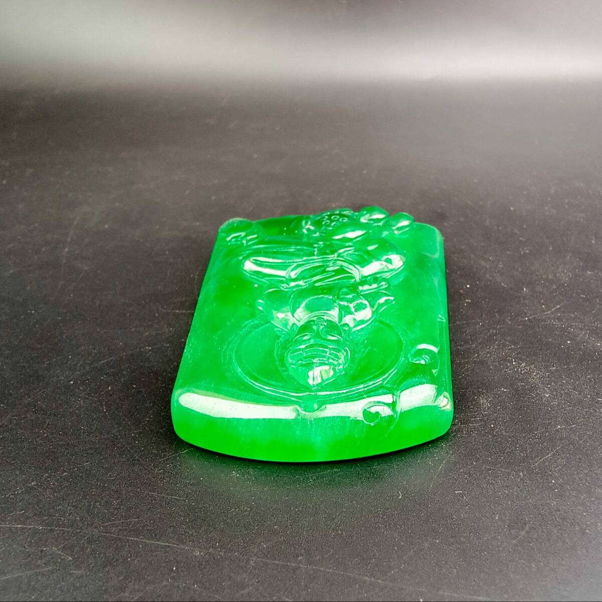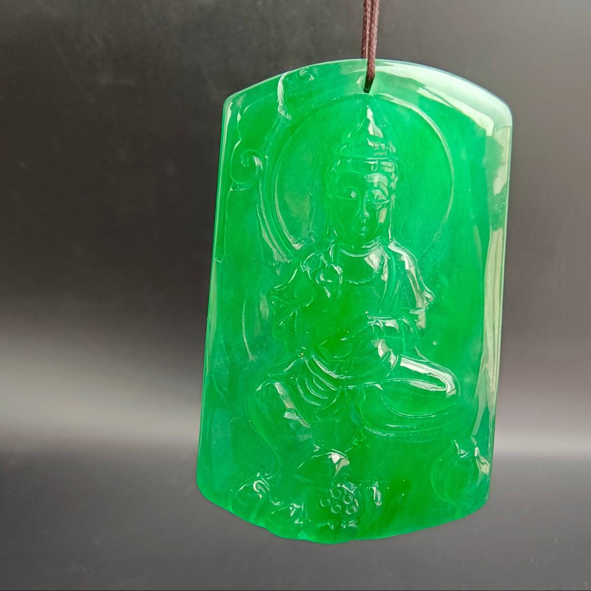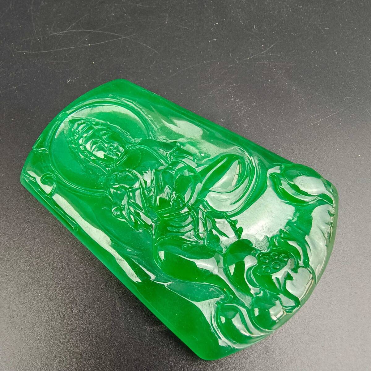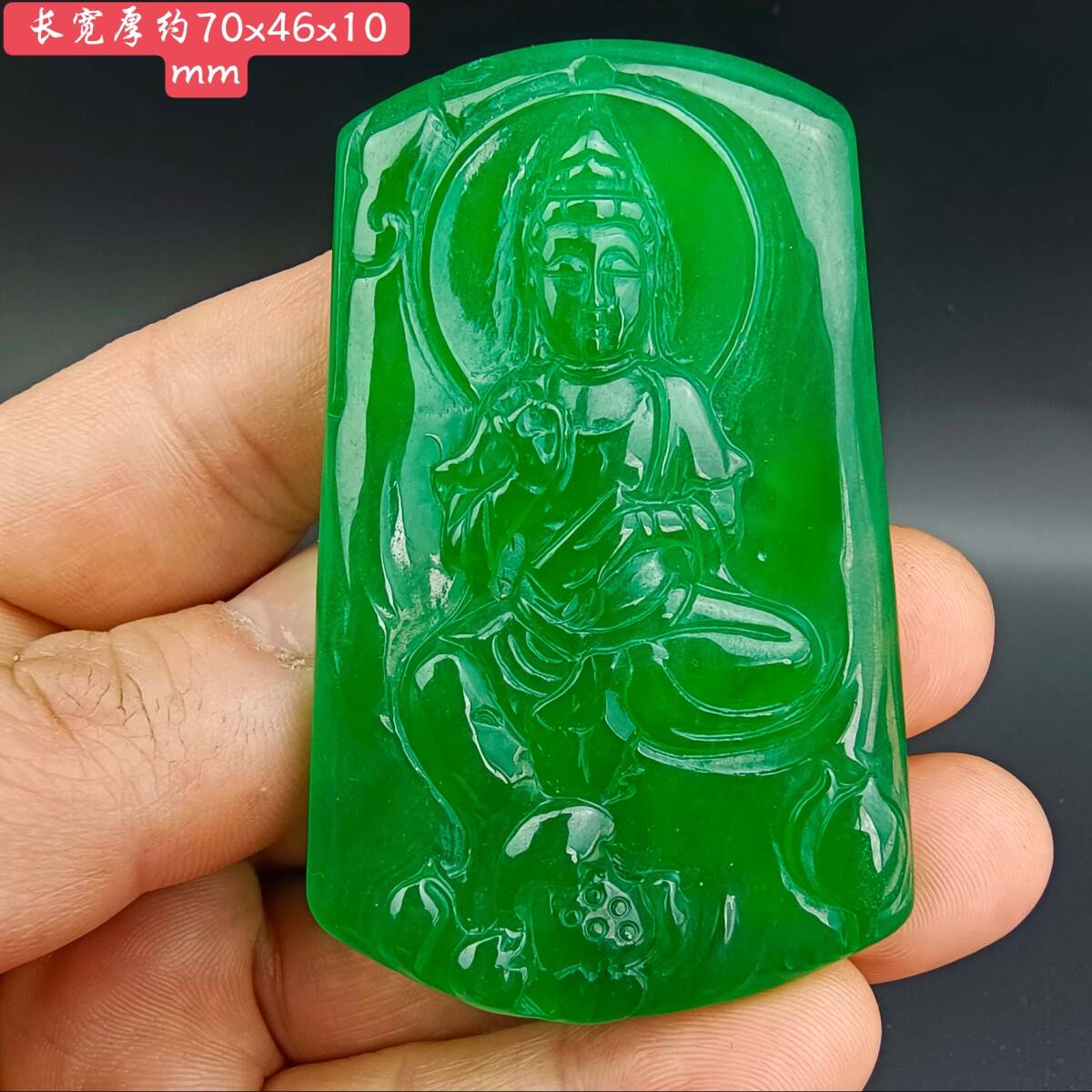 ▽鴻▽ 翡翠製 細密彫 蓮花觀音玉牌ネックレス 置物 古賞物 中国古玩 中国古美術