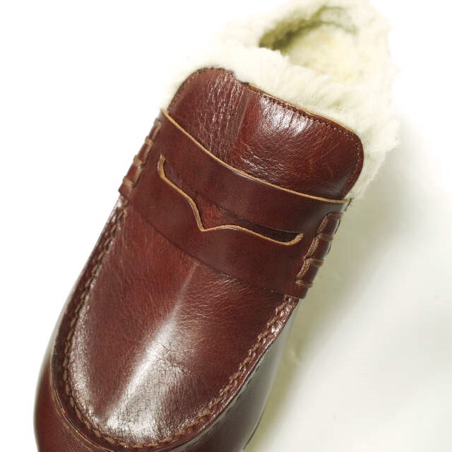 アッパーがコインローファーデザインのドレスデザインながら、サボタイプのウエッジソールで仕上げた履きやすい一足。