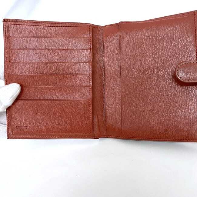 | 詳細説明 | 縁に擦れ、角に擦れや汚れ、表面中央付近に小傷、フラップ表面とベルトホック表面に汚れ、小銭入れ内に傷、カードポケット側中央に皺など使用感がございますが比較的綺麗なお品物です。 |