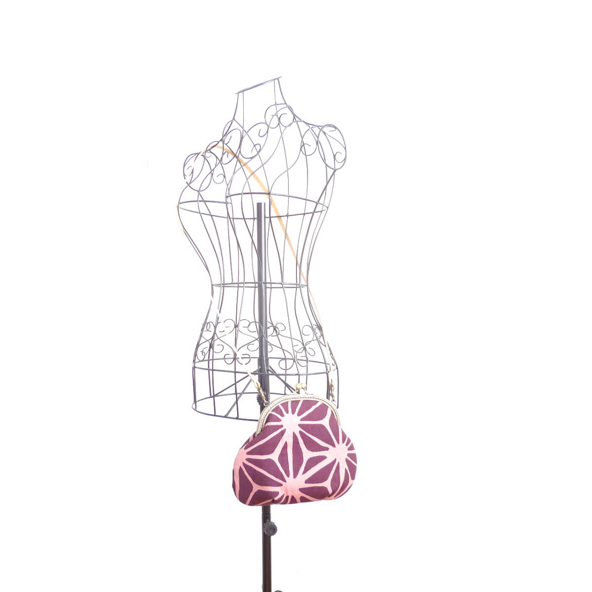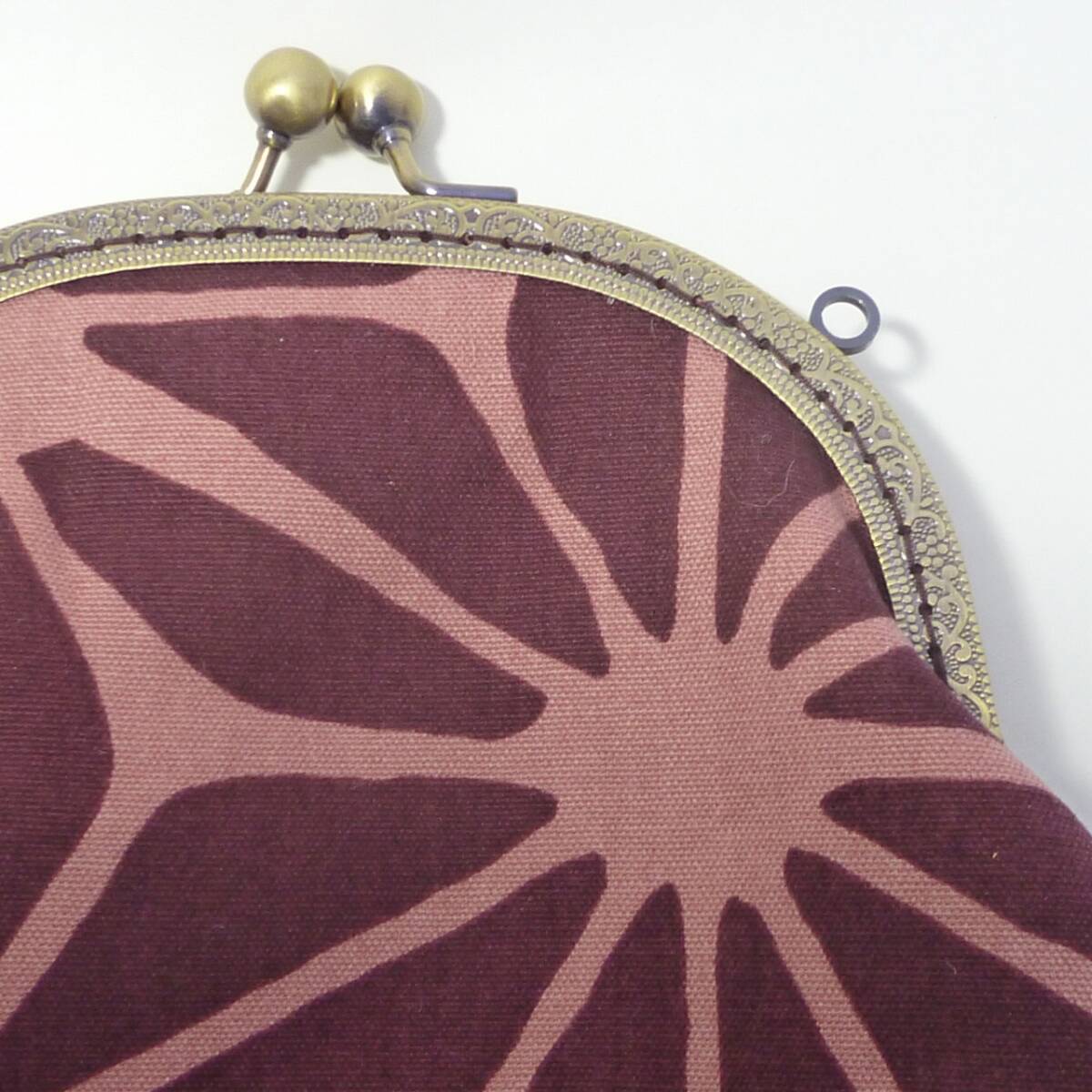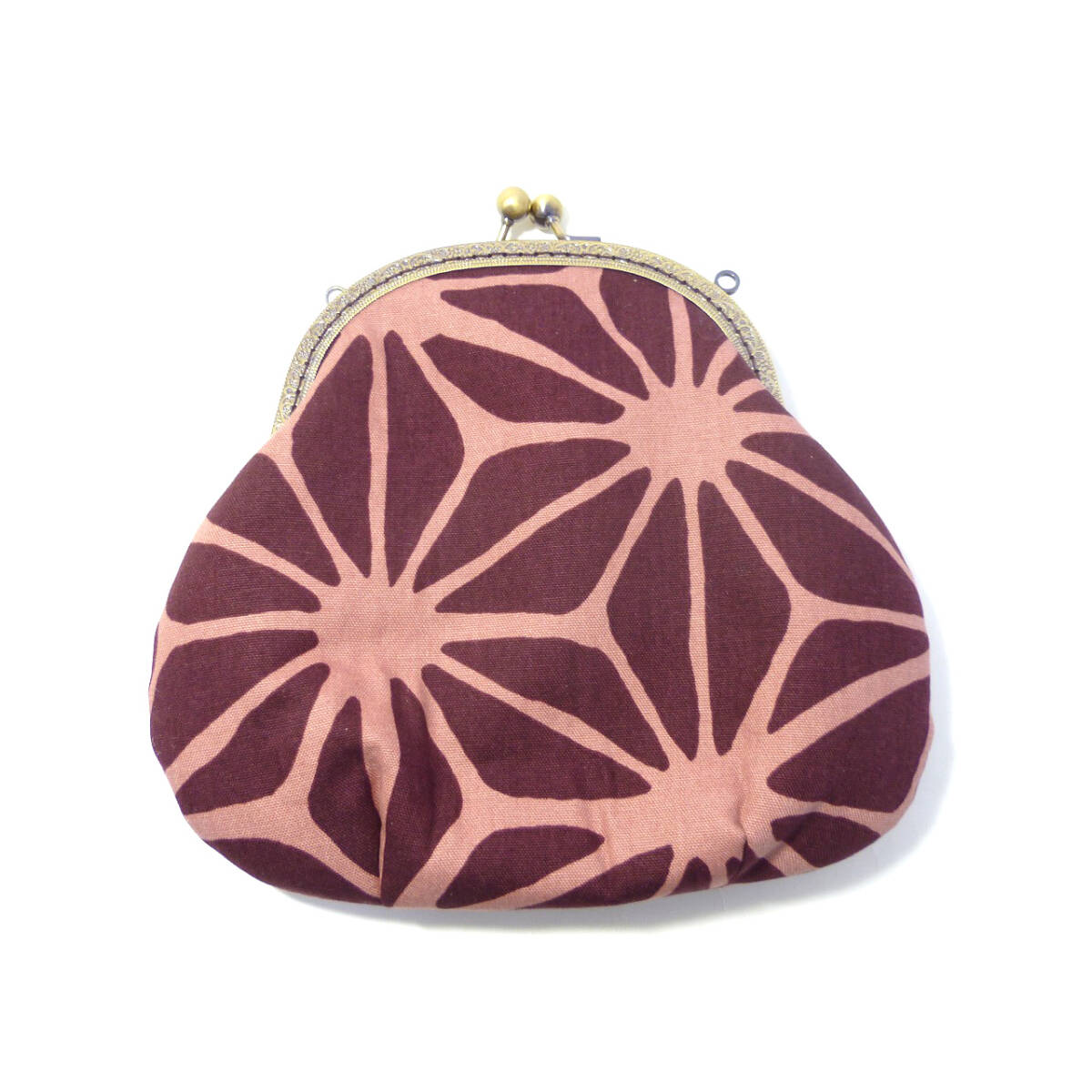 がま口ショルダーバッグ 麻の葉柄 和柄 あずき色 ポシェット ハンドメイド G410