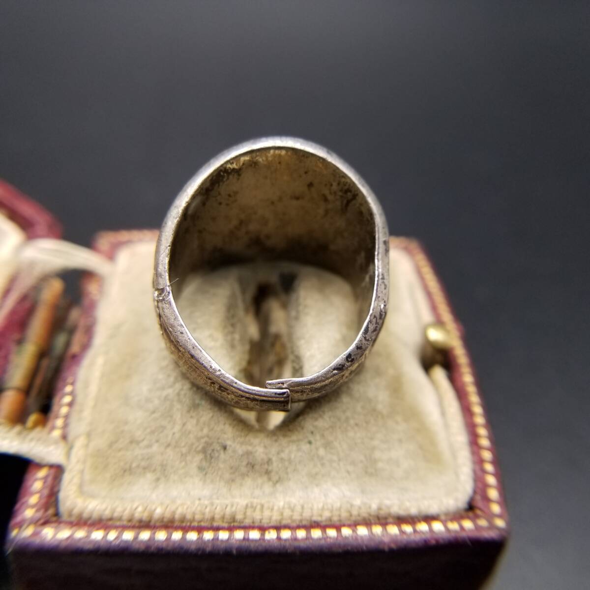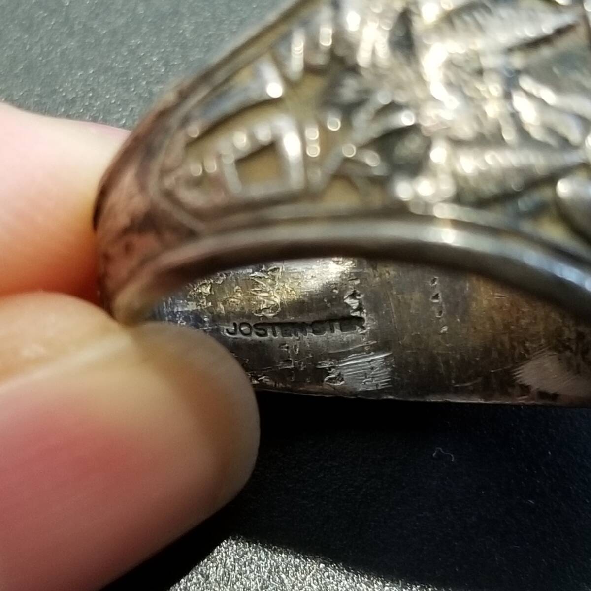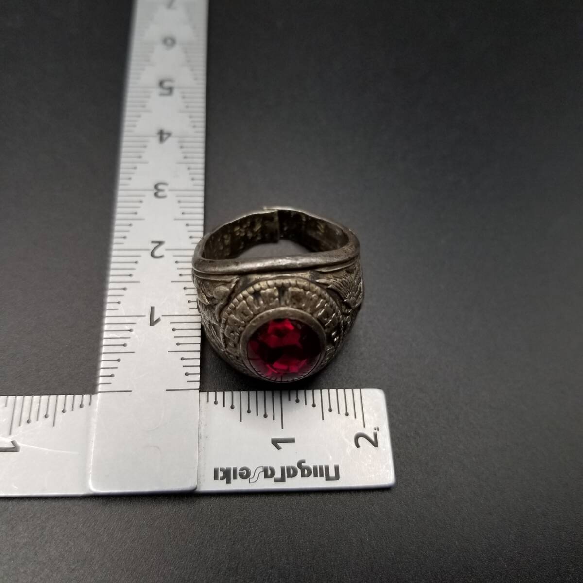 1975年 Josten社製 ヴィンテージ クラスリング Eagle River High School カレッジシグネット 925 シルバー 銀 指輪 マゼンタ石 カボション 鷲彫金 Y21-Z
