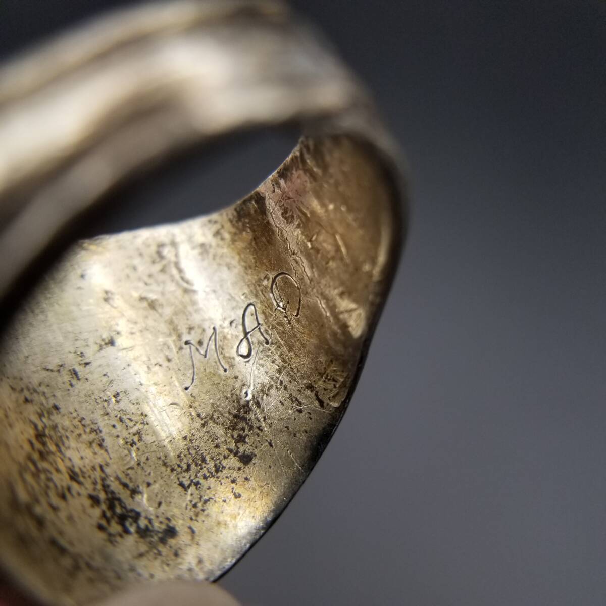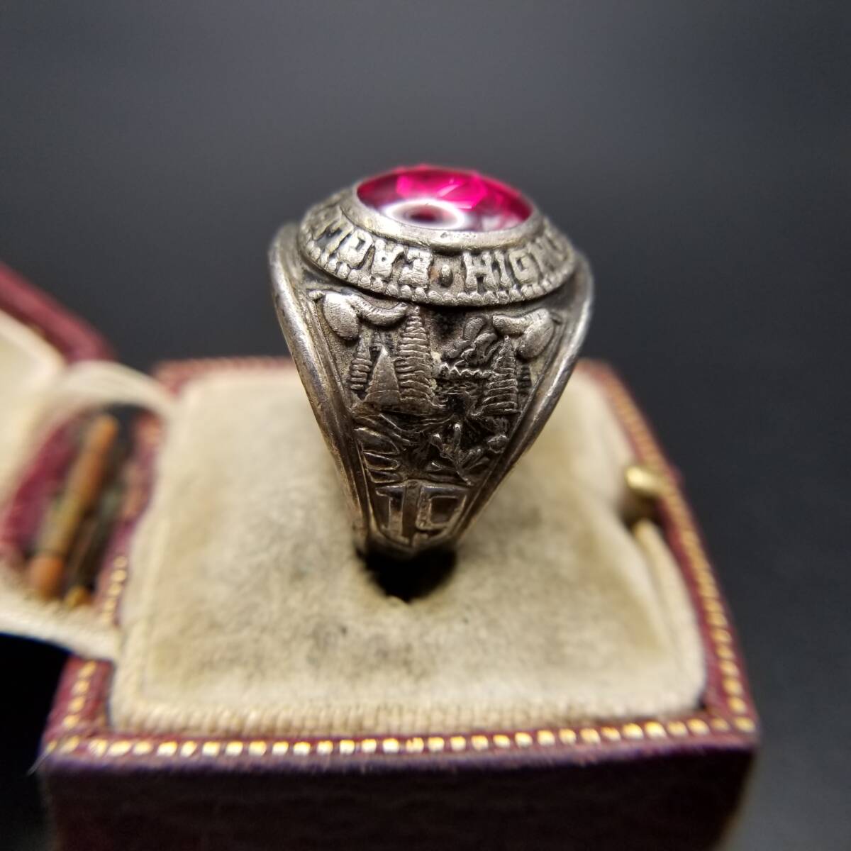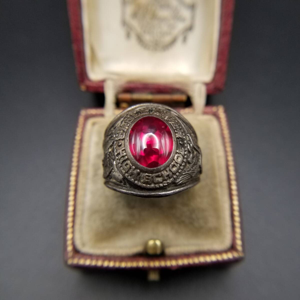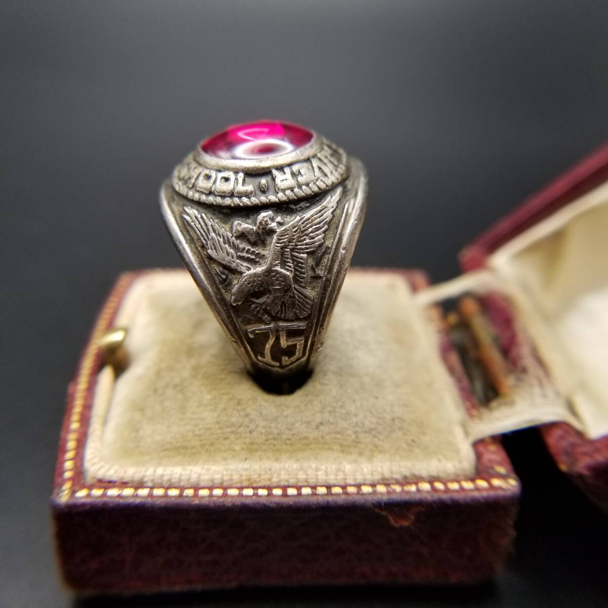 1975年 Josten社製 ヴィンテージ クラスリング Eagle River High School カレッジシグネット 925 シルバー 銀 指輪 マゼンタ石 Y21-Z