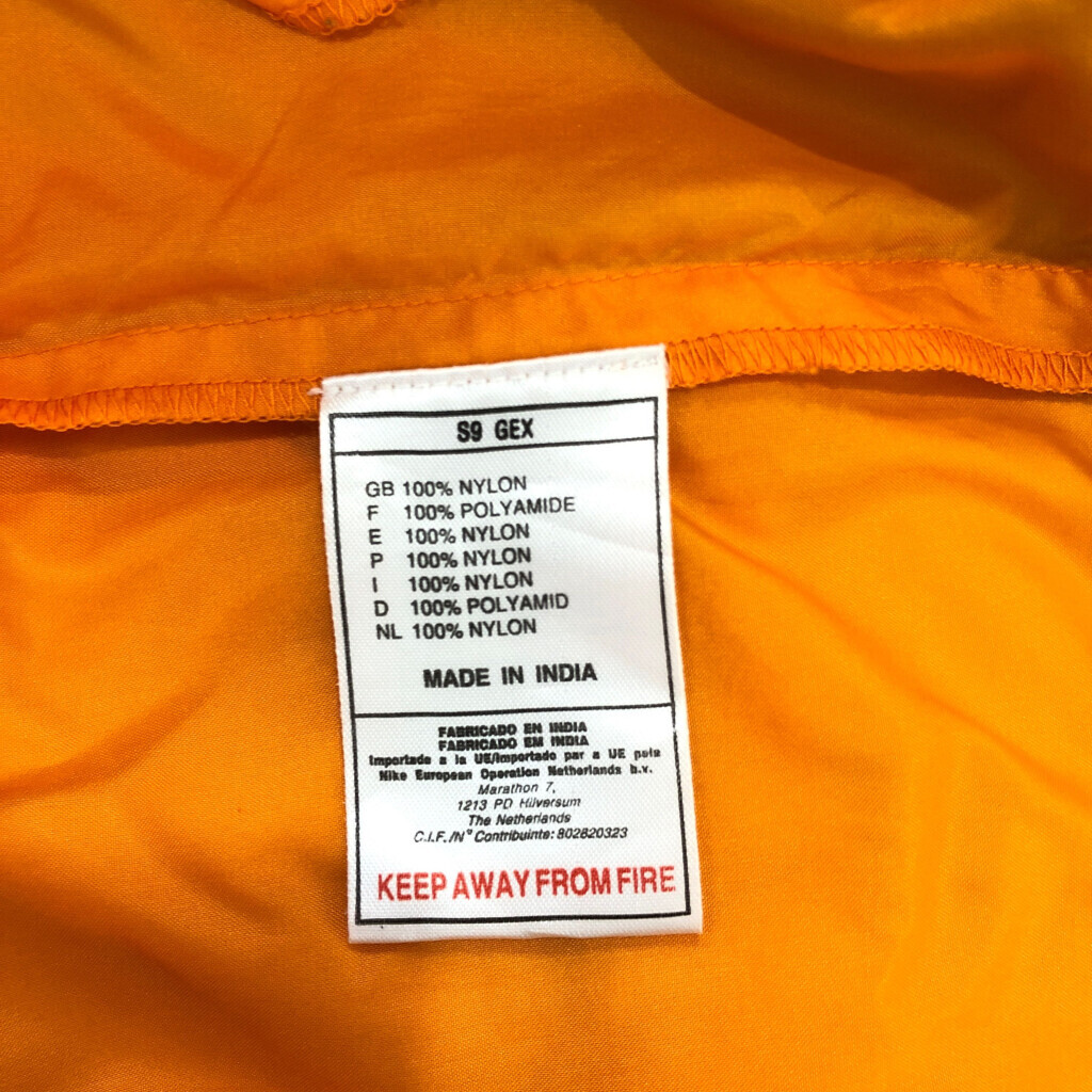 [商品管理番号] S8734 [ブランド] NIKE/ナイキ [サイズ] M [実寸サイズ] 着丈:約74cm 身幅:約64cm 裄丈:約85cm 袖下丈:約52cm [主な素材] 表地 : ナイロン [色] オレンジ [仕様] 00年代 裾ドローコード スポーツ [状態] 汚れ:肩 | |||