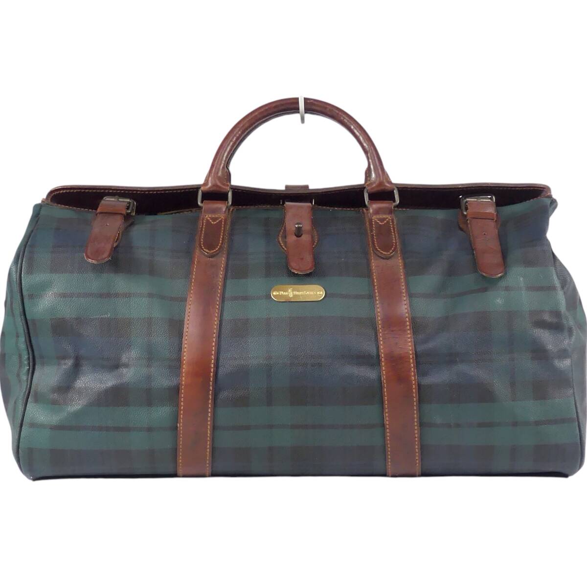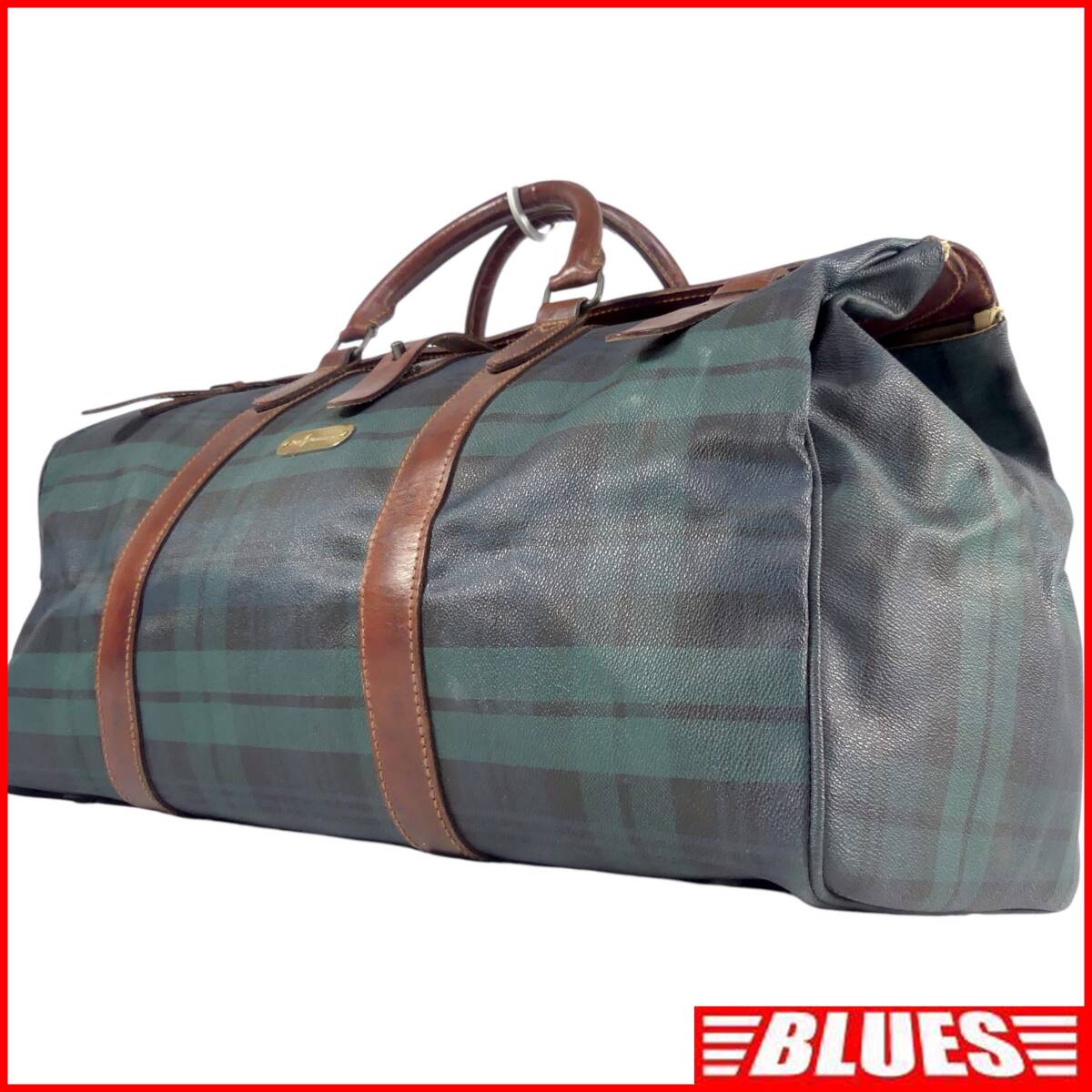 即決★POLO RALPH LAUREN★レザーコンビボストンバッグ ラルフローレン 緑 チェック 本革 90s ヴィンテージ 本皮 旅行 カバン 出張 鞄