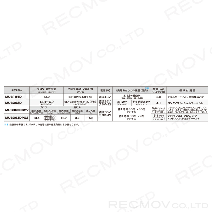 標準付属品:フラットノズル・ブロワパイプ・エンドノズル・バキュームキット      (集じんノズル・集じんパイプ・エルボーパイプ・ダストバッグ・ショルダーベルト)