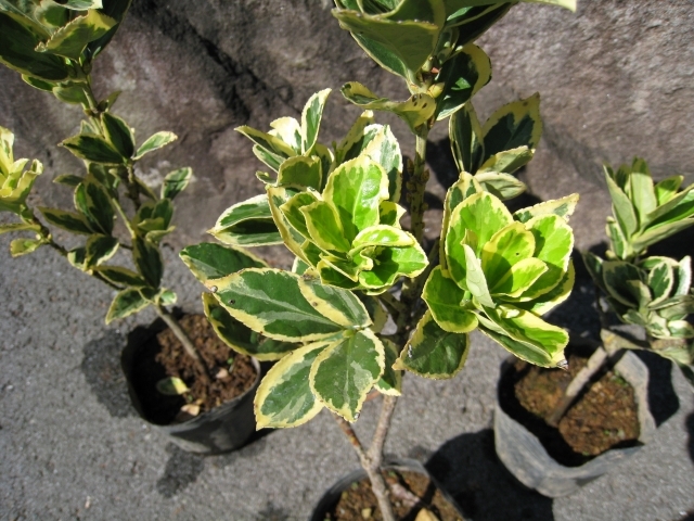 キフクリンマサキは最近人気が出てきている品種。葉の外側に黄斑が入り綺麗な品種です。カラーフラワーのような使い方をすればアレンジ次第で多用できます。