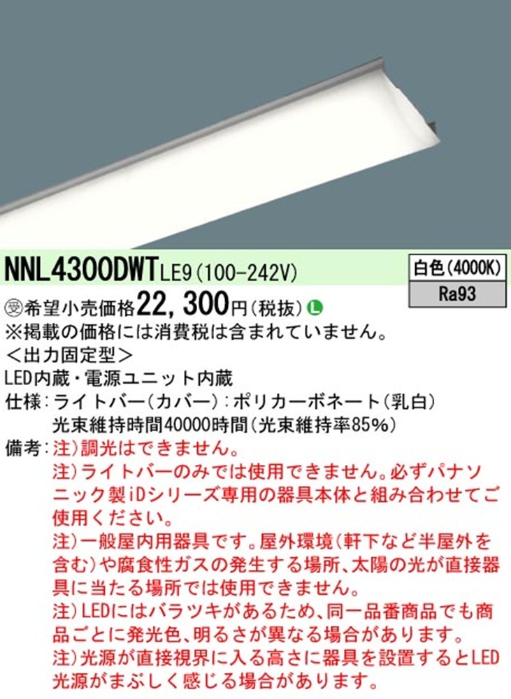 LEDライトバー 4000K 白色 電源内蔵 非調光 ライトバーのみ パナソニック NNL4300DWTLE9