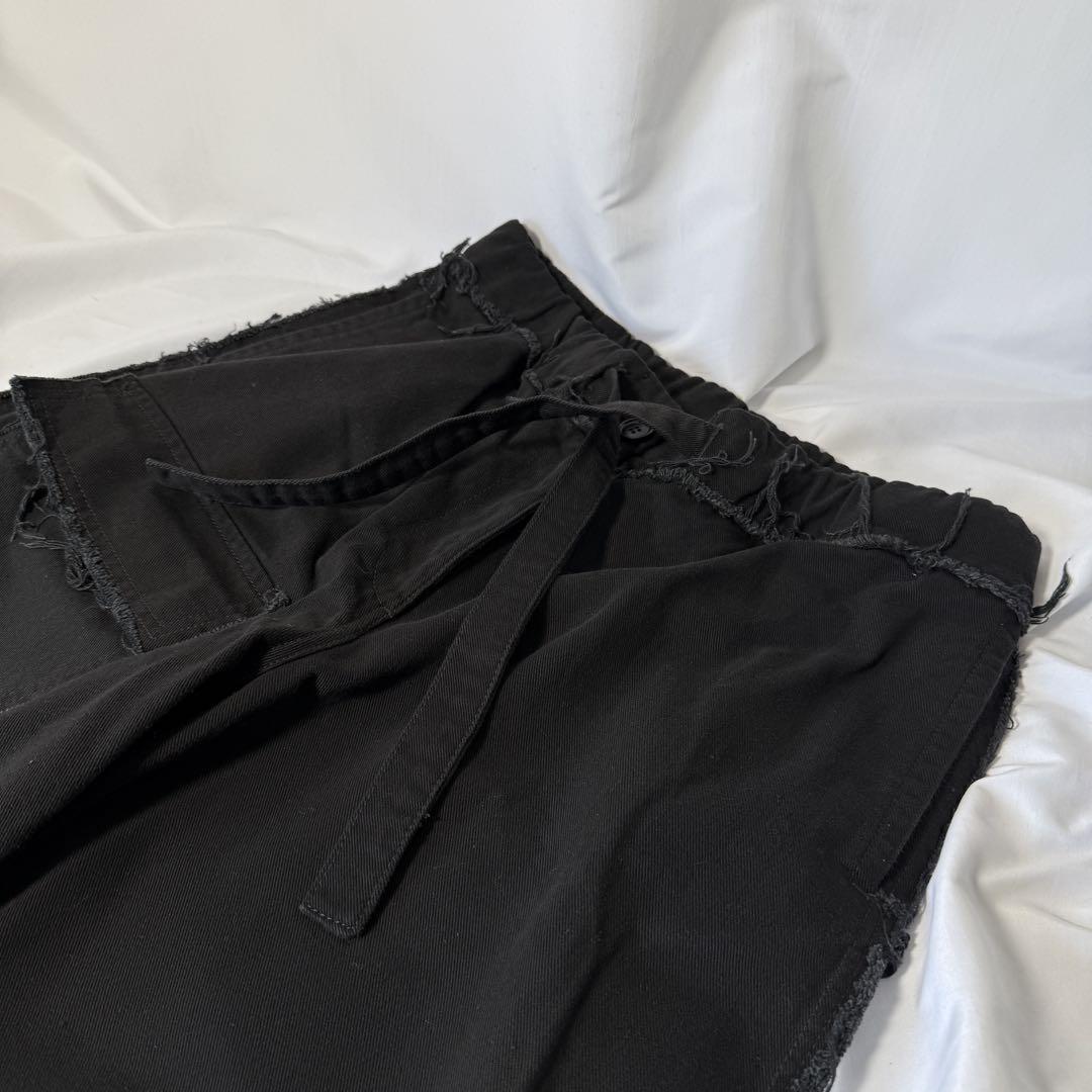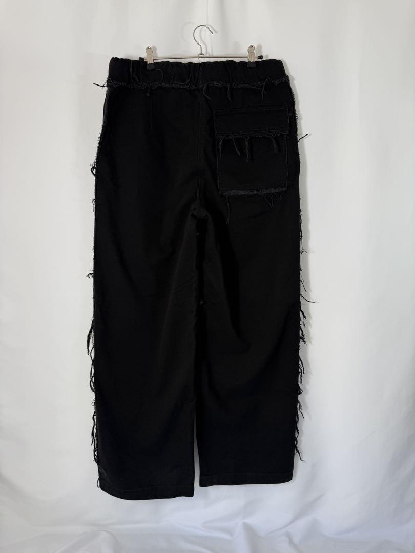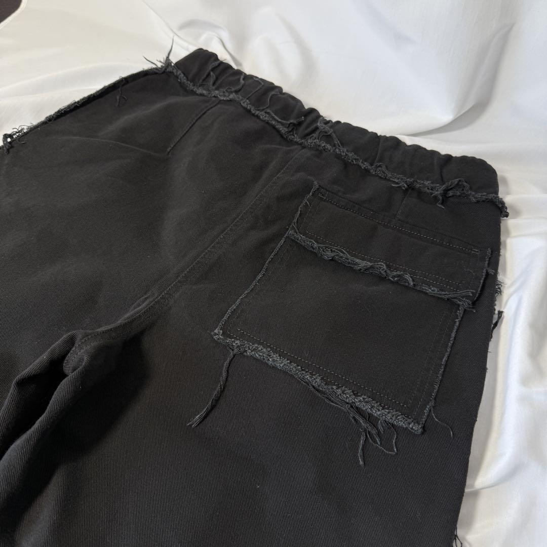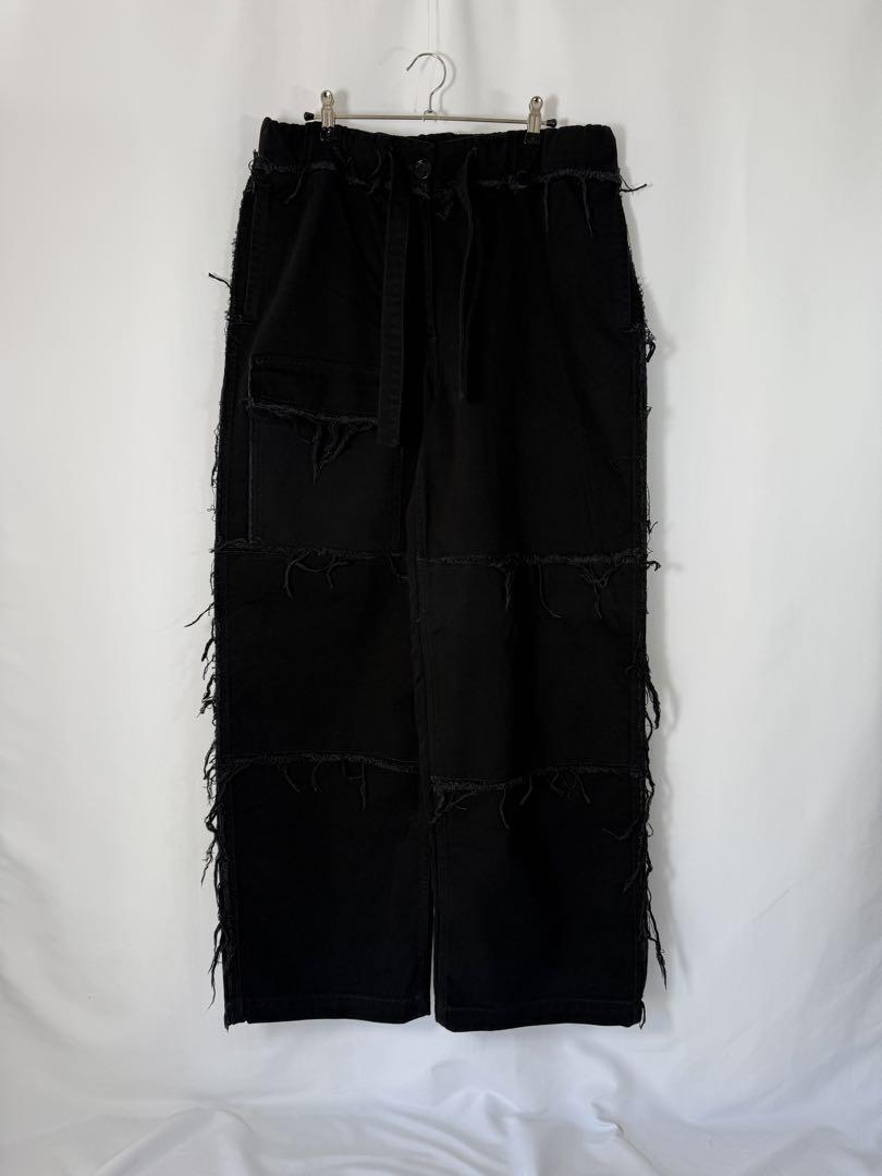 DRIES VAN NOTEN SPRING SUMMER 2023 Women's Collection闇から光へ-3つの構成で展開されるストーリー。ブラックの純度、色あせたパステスカラー、そしてフラワープリントの新しい描写。2020年以来2年半振りのショーとなったDries Van Noten2023年春夏コレクションは、これらの要素のコントラストを探究する。黒で覆われたインビテーションが輝かしいテクニカラー・プリントへと変わるように、コレクションはダークな色合いからオプティミズムの祝祭へ。クラッシュド・プリーツ、カーゴパンツのフリンジ、ドレスのボディ全体に流れるように重なるレイヤード。Dries Van Notenが長い間続けてきた花の表現。これまでの花のデザインを再考し、その尺度を巧みに操る。・ブラックデニム・切り替え部分の断ち切りフリンジがアクセント・今シーズンのLOOKでも使用されたアイテム