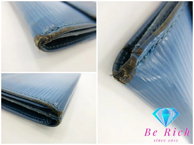 外側状態 | 表面 | ・擦れ、ひび割れ、コバ擦れがあります ・全体に黒ずみ、汚れ、退色があります ・ラメのような汚れ付着が全体にあります | |||