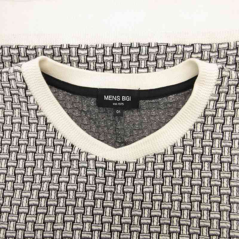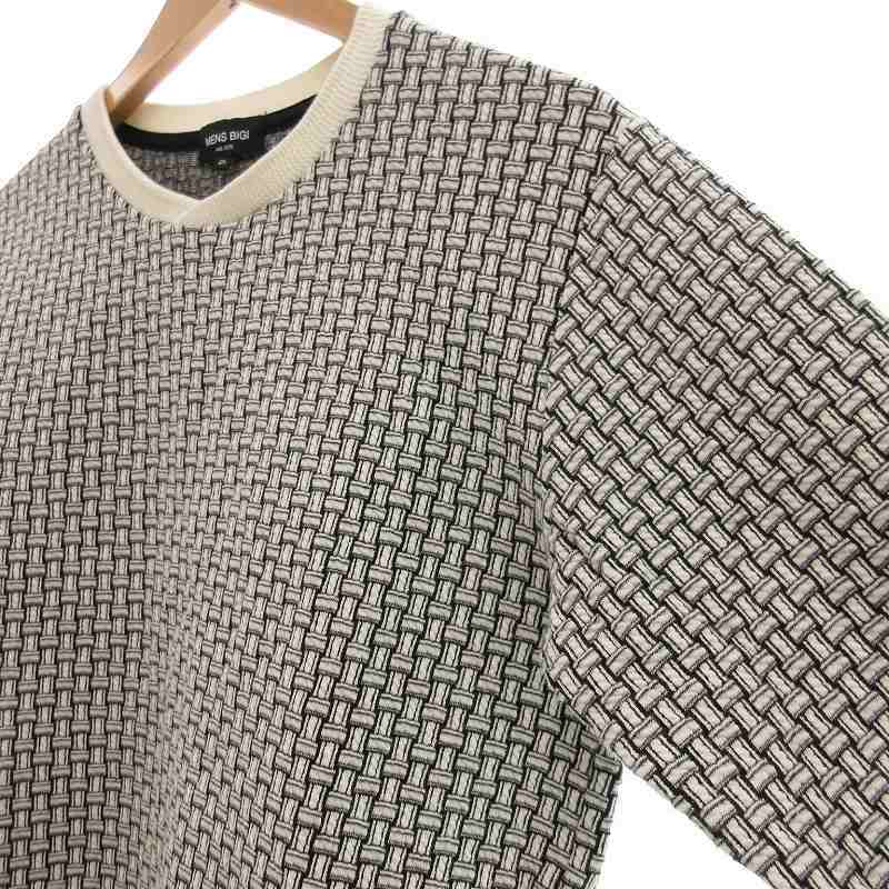 メンズビギ MEN'S BIGI 格子柄フクレジャカードカットソー セーター スウェット 01 ホワイト系 /UO メンズ