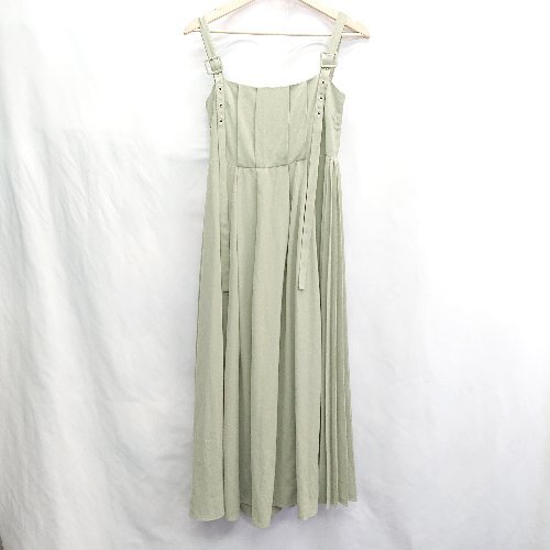 ◇ ⊂ ノーブランド ギャザー加工 肩ひも調節可能 ロング丈 ワンピース サイズ表記なし ライトグリーン系 レディース E