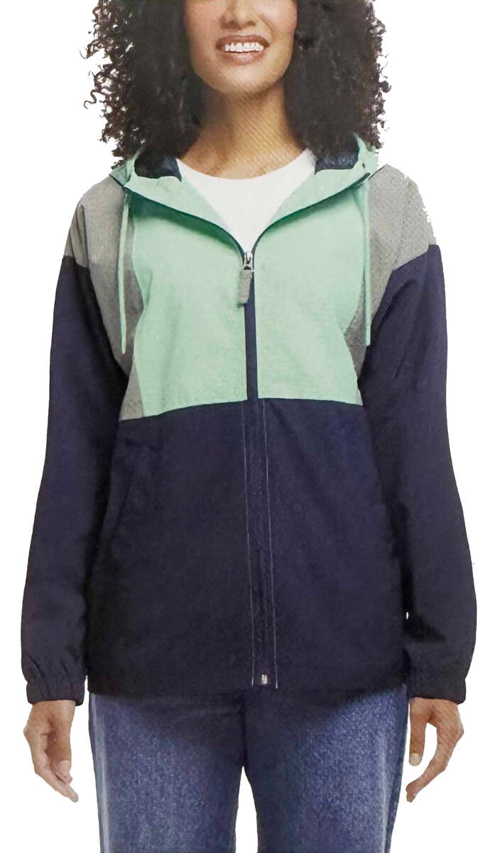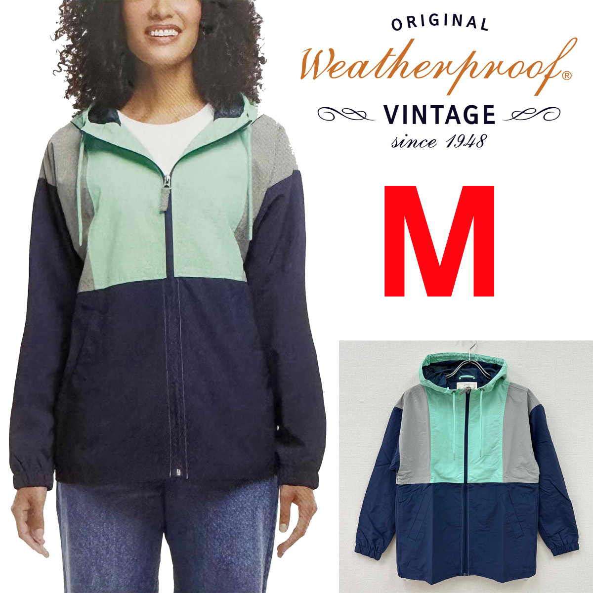 新品 M ★ コストコ weatherproof ウェザープルーフ レディース ウインドブレーカー グリーン カラーブロック ナイロンジャケット パーカー
