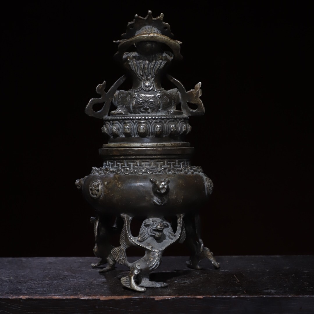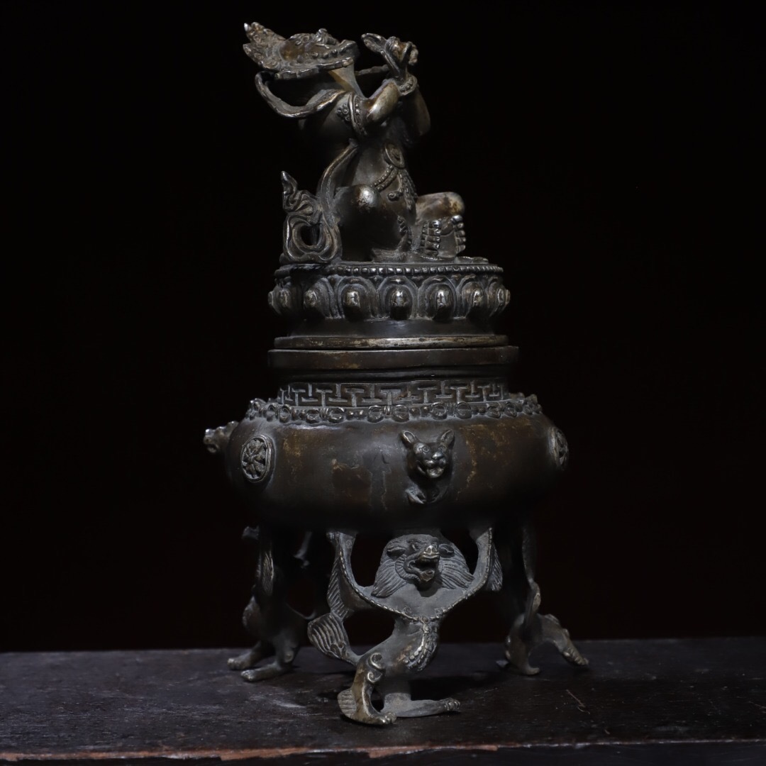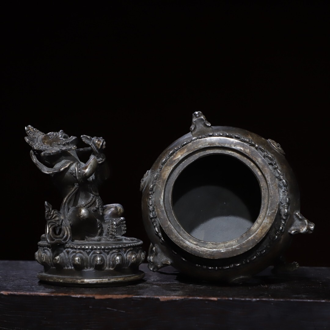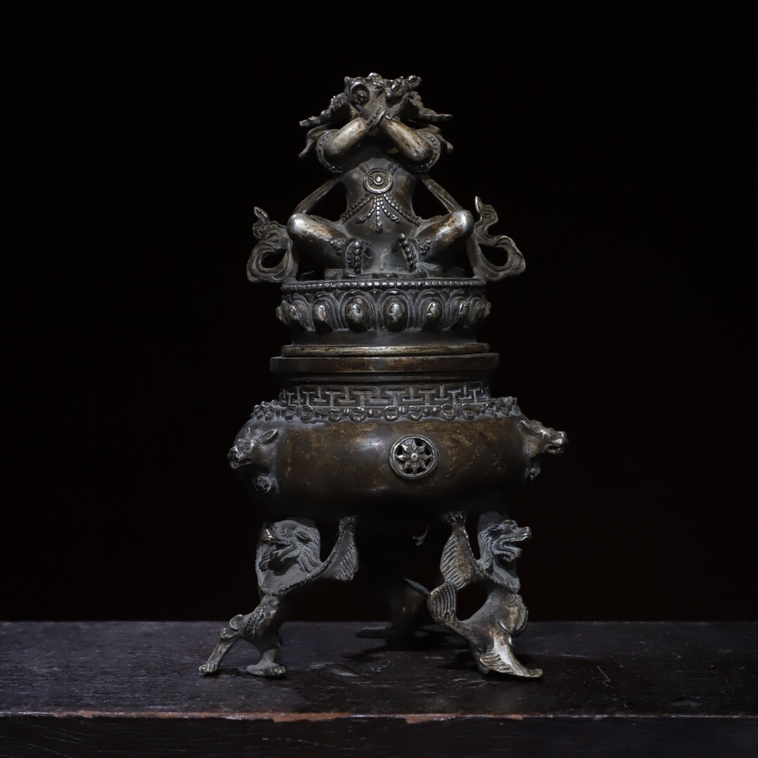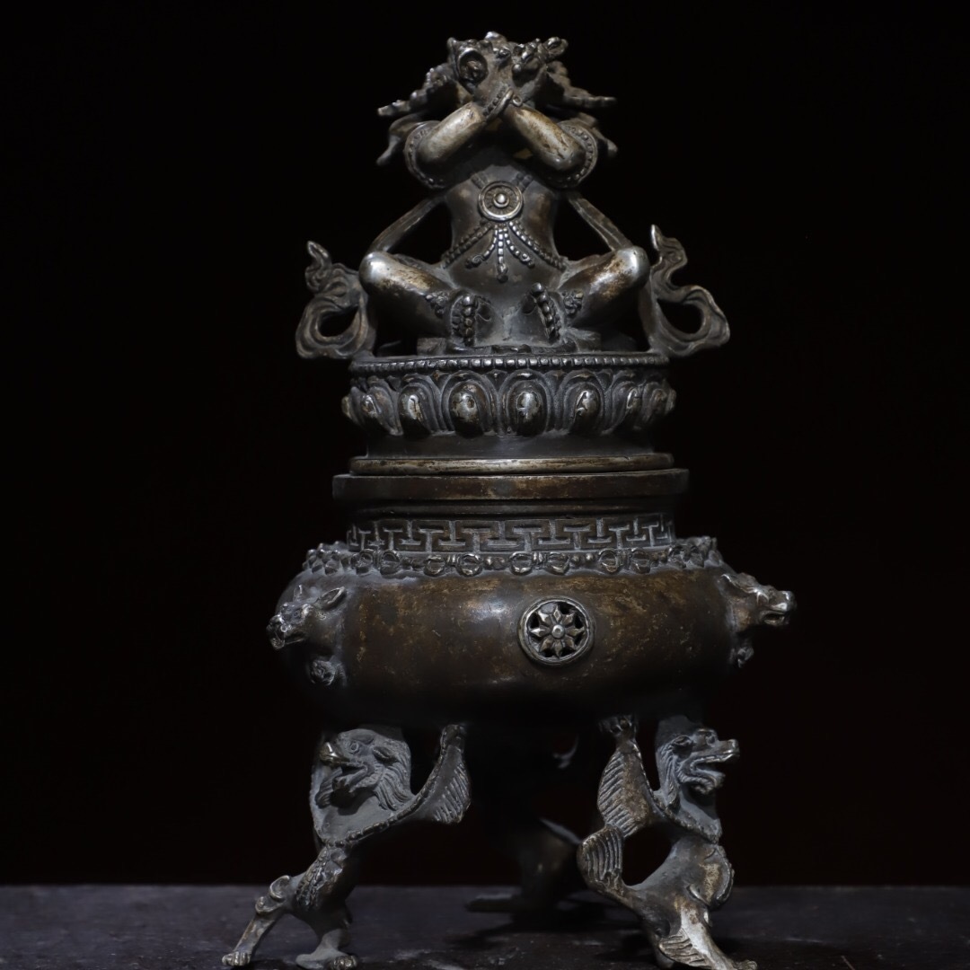 【超珍館蔵】銅製 銀鍍 金剛熏香炉 置物 古賞物 古美術品 稀少珍蔵品
