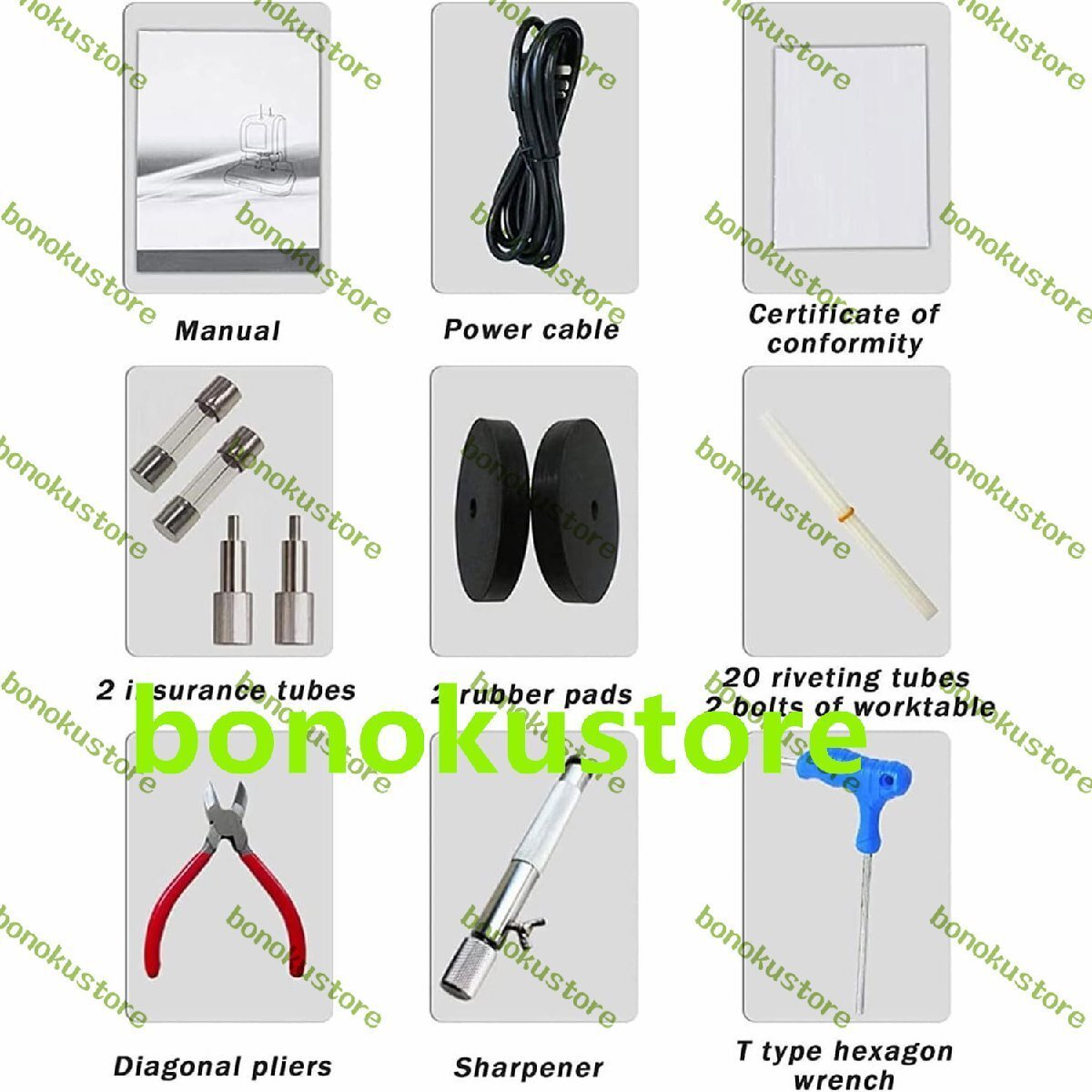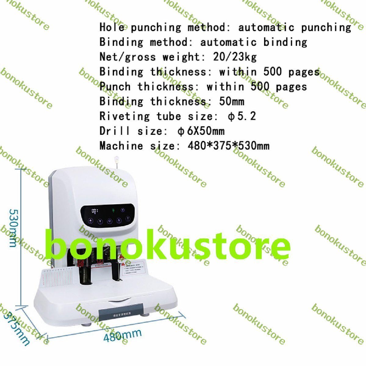 穴あけ方法: 自動パンチ バインド方法: 自動バインド 正味/総重量: 20/23kg 綴じ厚:500ページ以内 パンチ厚さ:500ページ以内 とじ厚さ:50mm リベットチューブサイズ:φ5.2 ドリルサイズ:φ6X50mm 機械サイズ:480x375x530mm