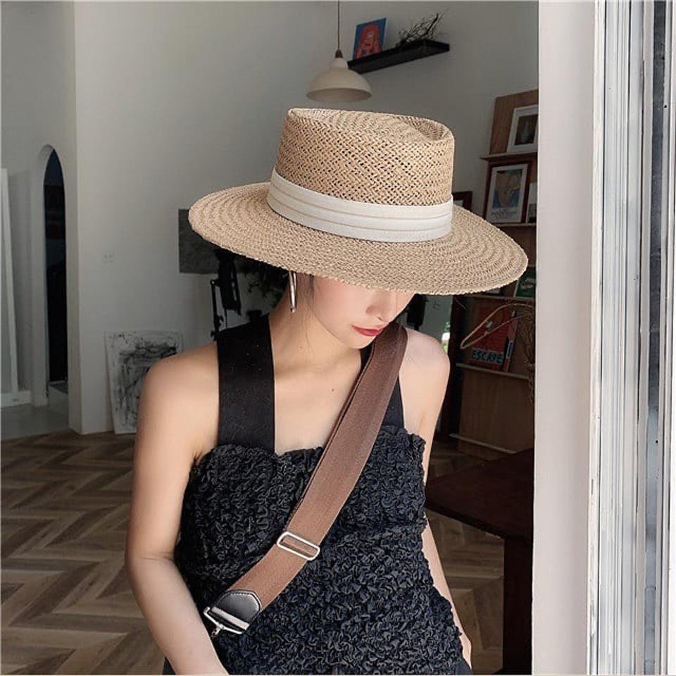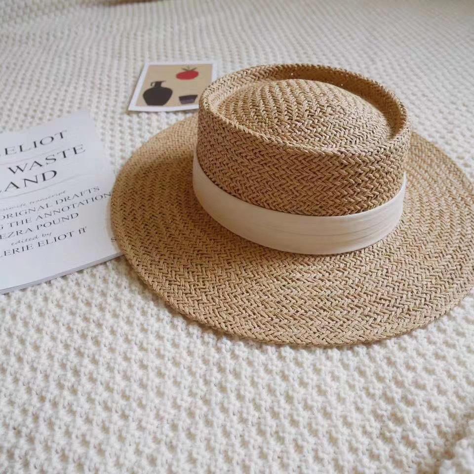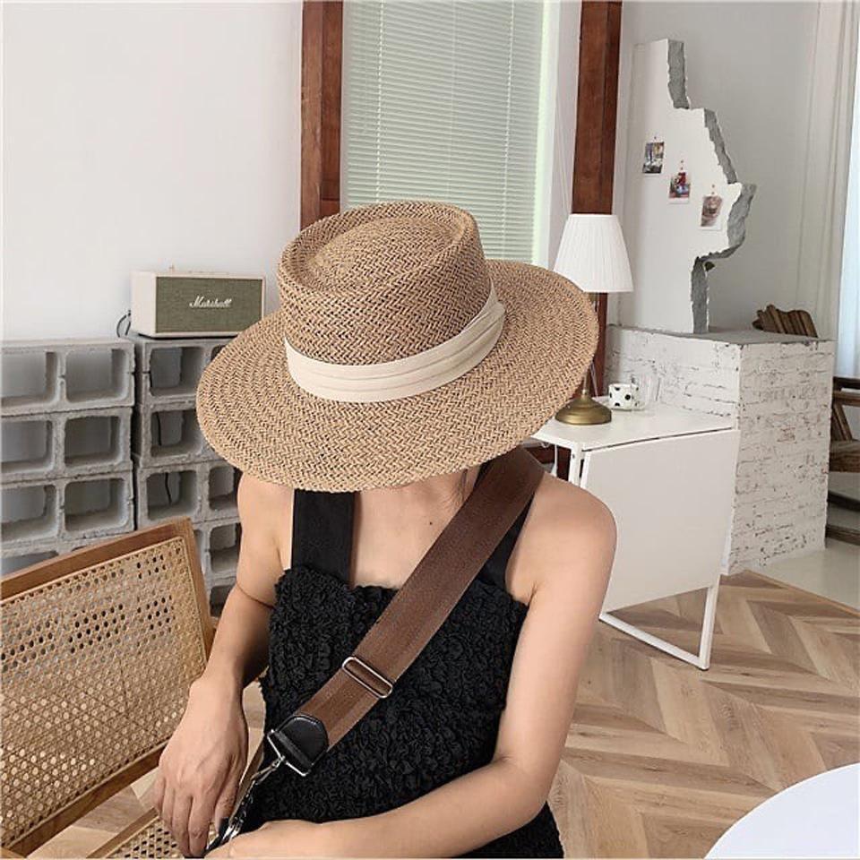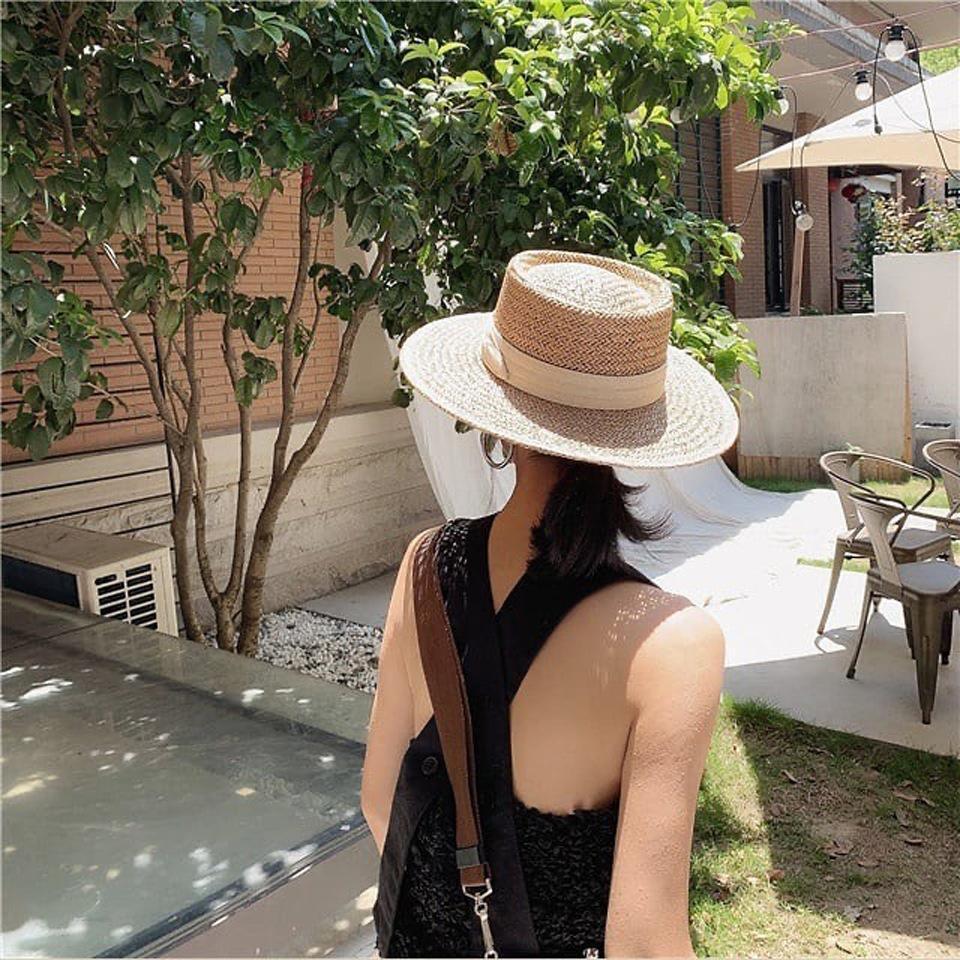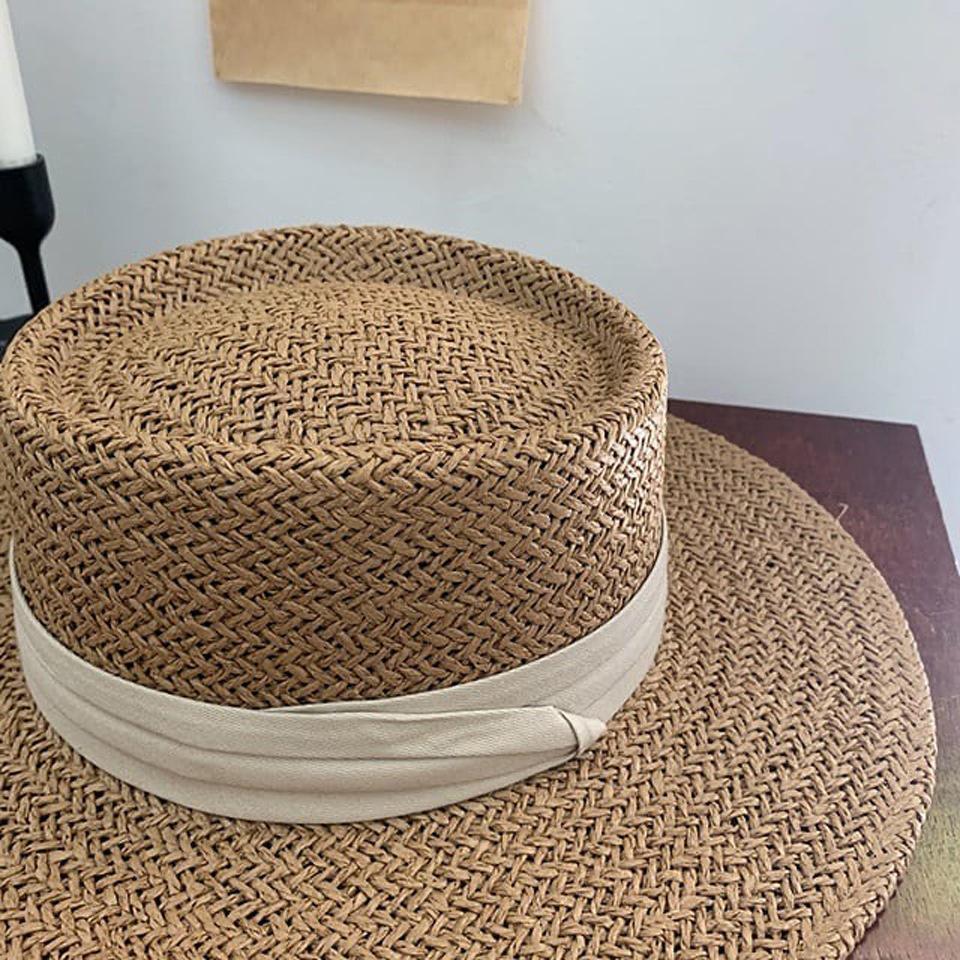 [大人/レディース商品]涼しげなストロー素材を採用したポークパイハット型つば広カンカン帽です。通気性抜群・軽量設計・シルエットもかなりキレイです!帽子内側のスベリ部分にサイズ調整用の紐があるので、サイズ調整も可能です。