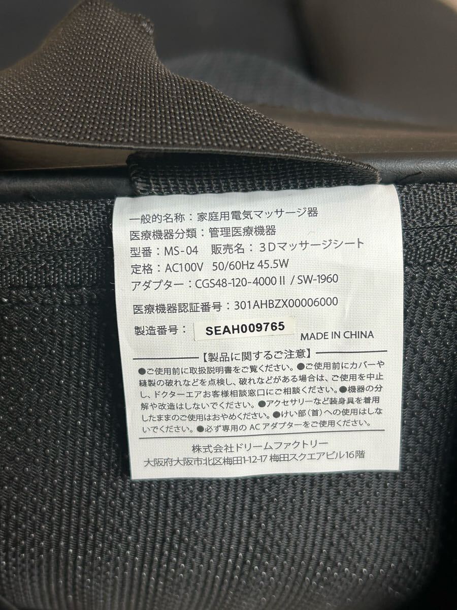 DOCTORAIR ドクターエア 3Dマッサージシート MS-04 家庭用電気マッサージ器 動作確認済み 直接引き取り可 奈良発