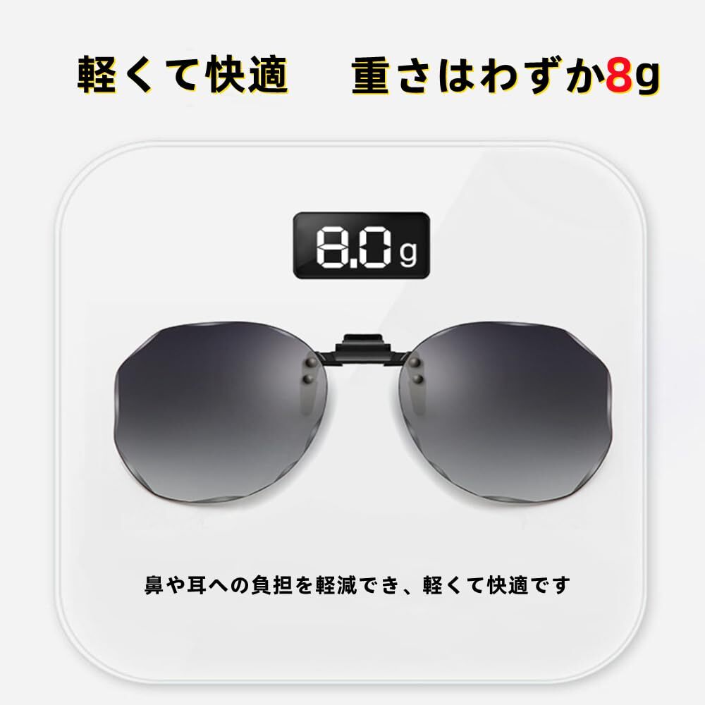【近視の方の必需品】クリップオンサングラスの重さはわずか8グラムで、クリップを近視メガネに挟んでひっくり返すだけで使えます。