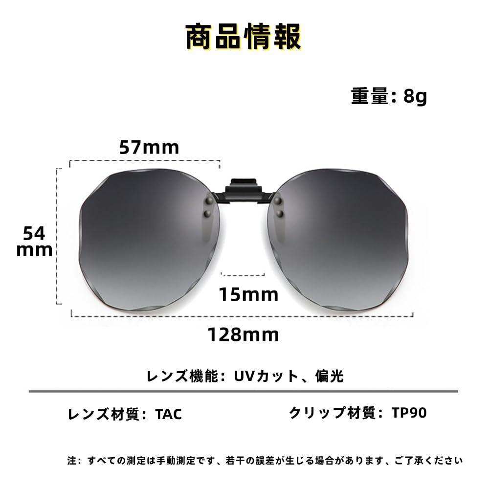 【パッケージ内容】クリップオンサングラス×1、偏光テストカード×1、クリーニングクロス×1、メガネケース×1。レンズ材質:TAC、クリップ材質:TP90。