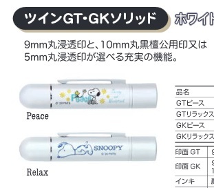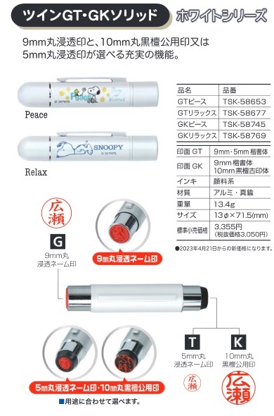 スヌーピー ツインGT・GKソリッド 9mm浸透印+訂正印または黒檀認印 完成品 ホワイトシリーズ 絵柄2種 浸透印
