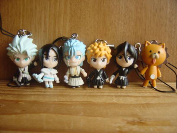 1.黒崎一護 2.日番谷冬獅郎 3.朽木ルキア 4.石田雨竜 5.グリムジョー 6.不動のマスコット?コン ◇手足がブラブラゆれるよ! |
