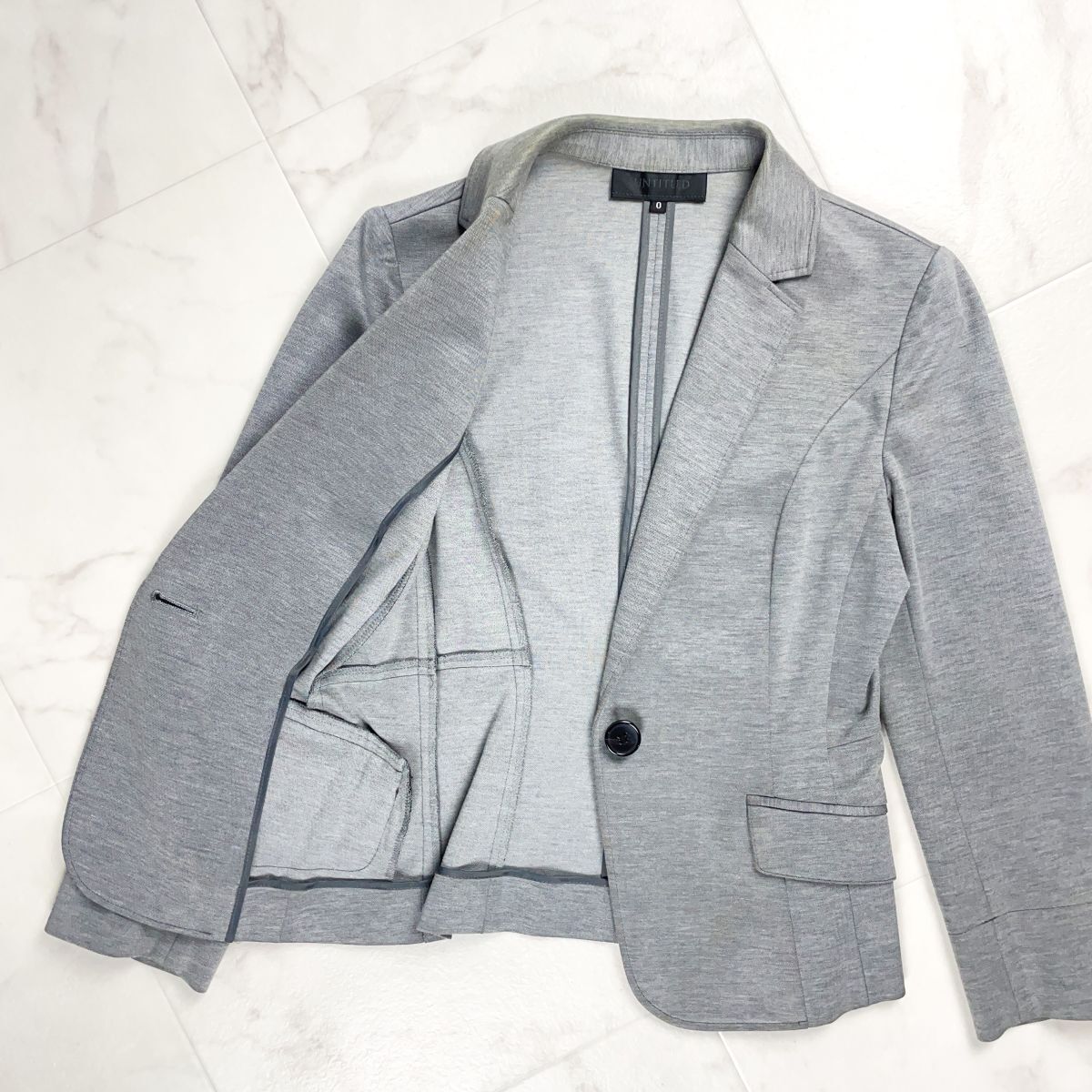 美品 UNTITLED アンタイトル ストレッチテーラードジャケット 裏地無し ウエストシェイプ レディース グレー サイズ0*ZC462