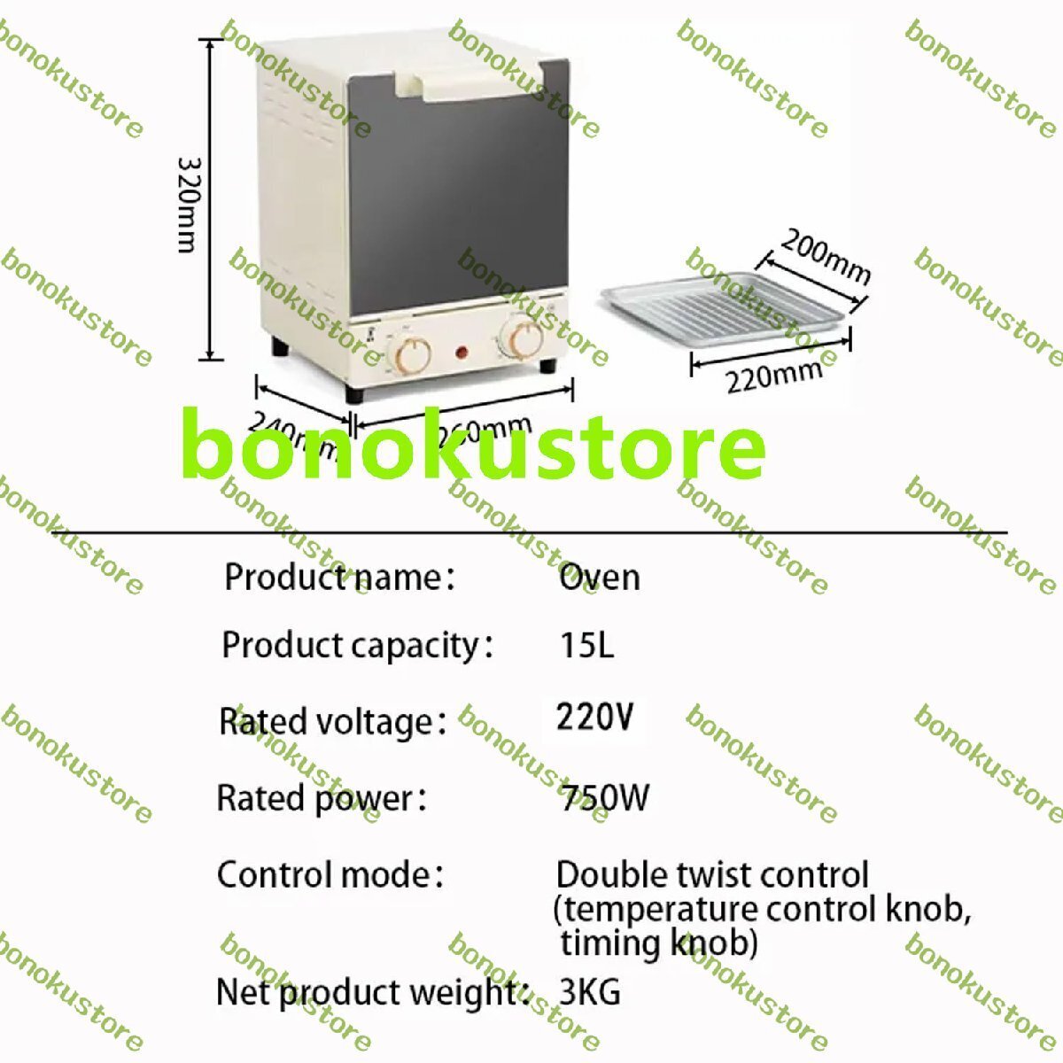 名前: 電気オーブン 色: ホワイト 電力: 750W 容量: 15L 温度調節範囲:70~250℃ タイミング: 0-60分 制御モード: 2 つのノブスイッチ