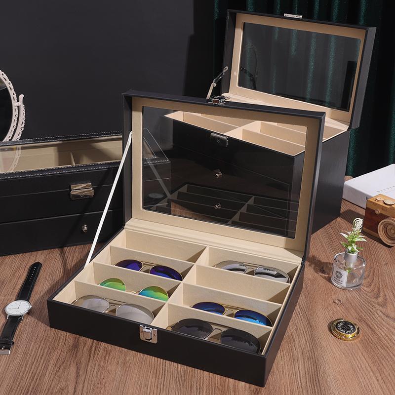 大人気メガネ コレクション ケース 収納ボックス 黒 眼鏡 サングラス 8本収納高品質