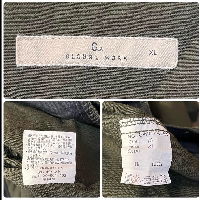 P メンズ パンツ GLOBAL WORK グローバルワーク カーキ ミリタリー カーゴ アメカジ 古着 大きい FF375 / 約W35 全国一律レターパック配送