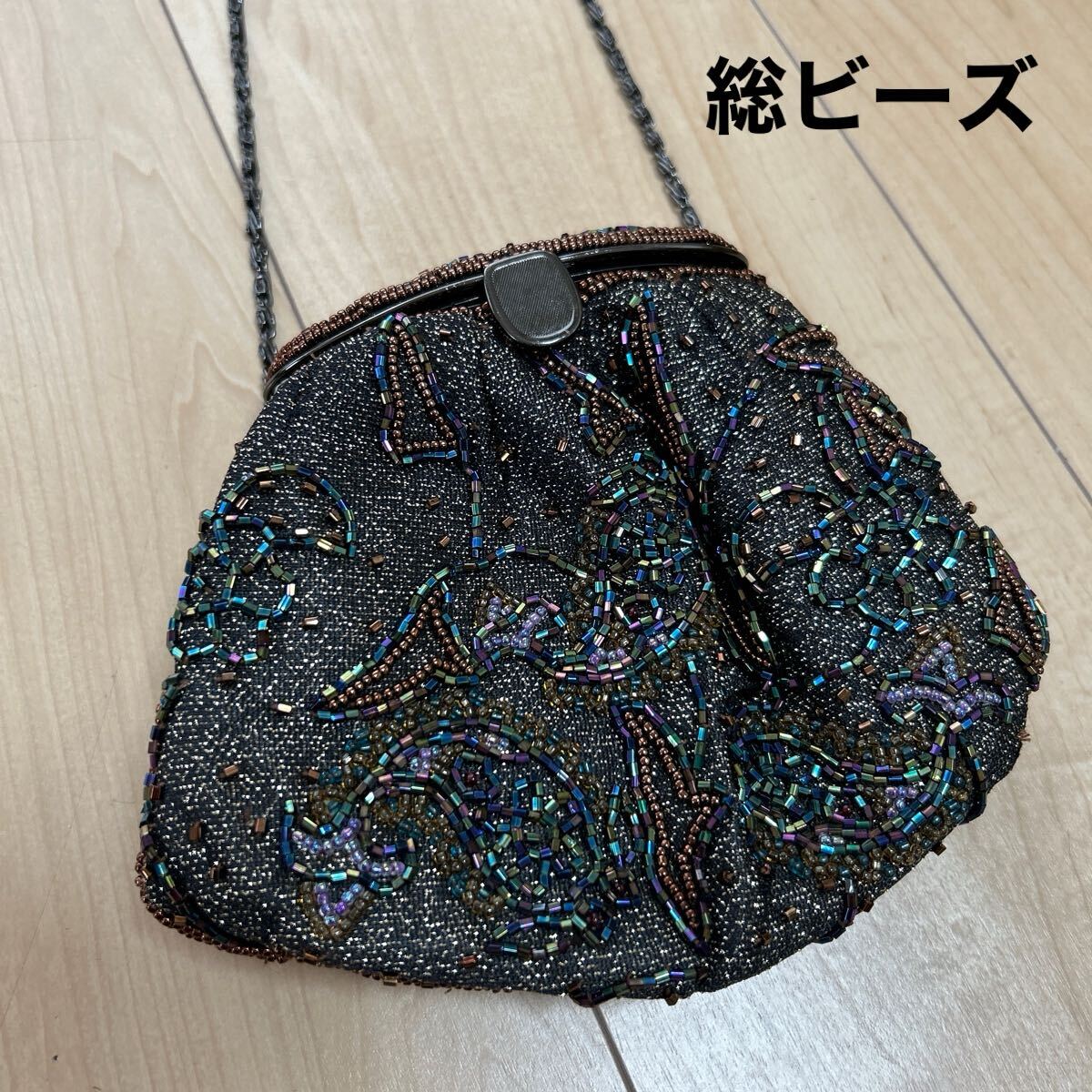 レトロ感ある、総ビーズバッグです