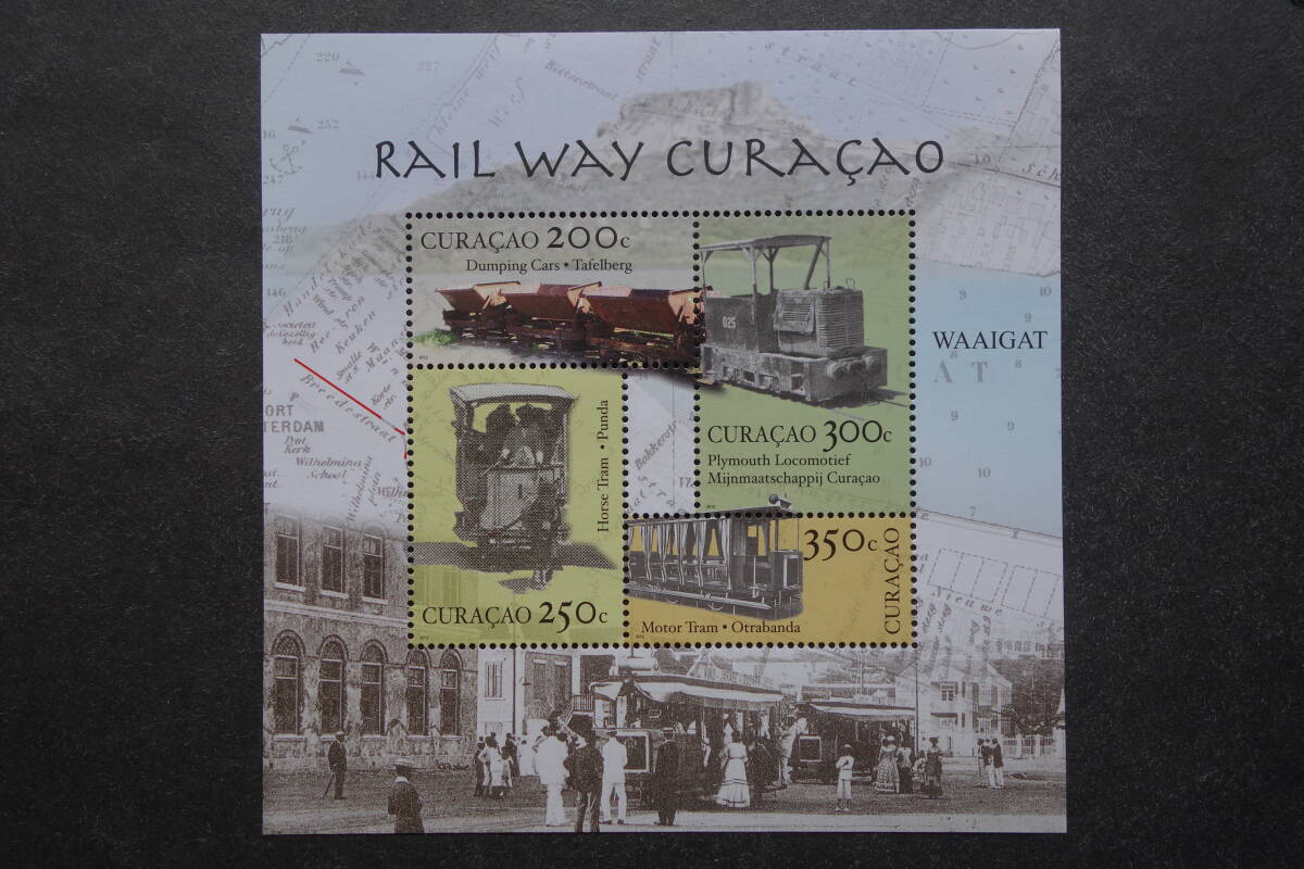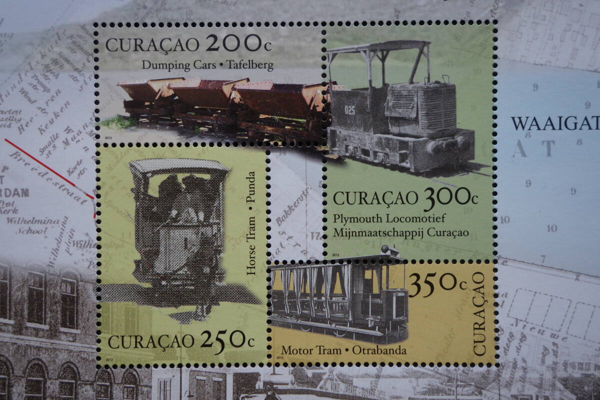 外国切手: キュラソー島切手 「列車」 4種m/s 未使用