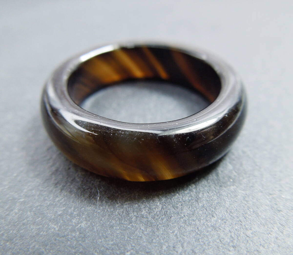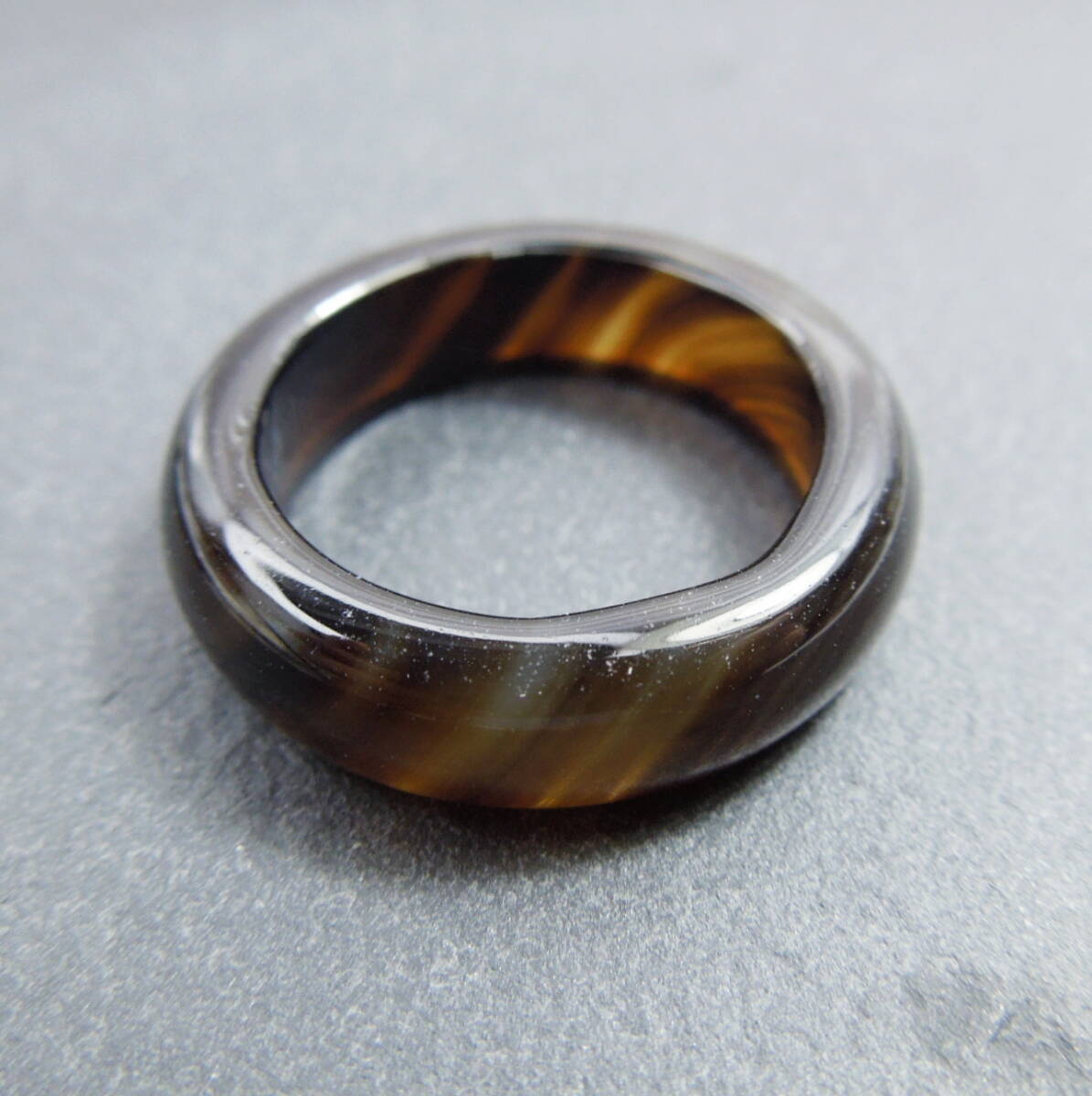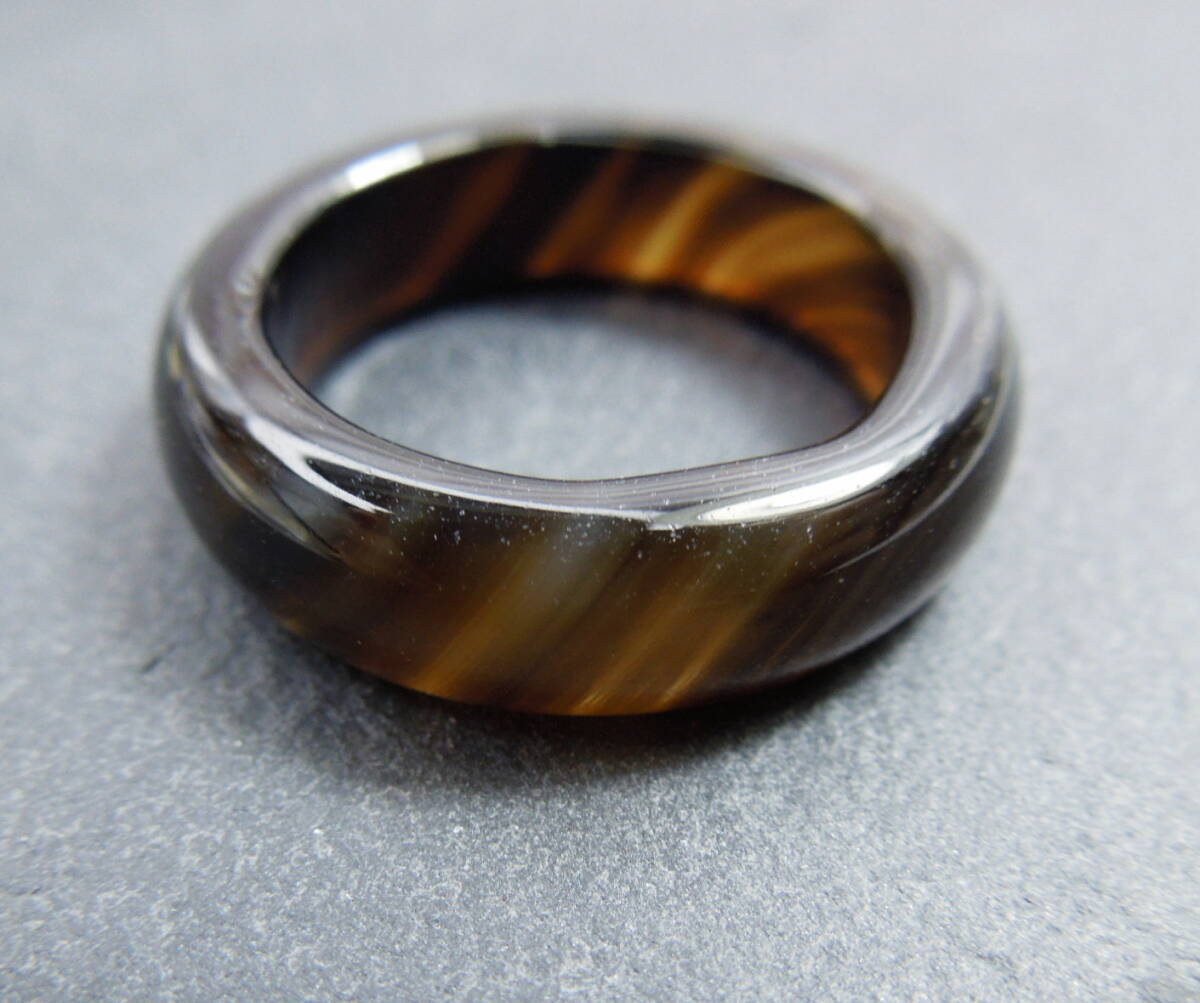 L36 メノウリング 約13号~13.5号 ブラウン系 指輪 くりぬきリング ブラウン 茶系 くり抜きリング 縞瑪瑙 金属アレルギー対応