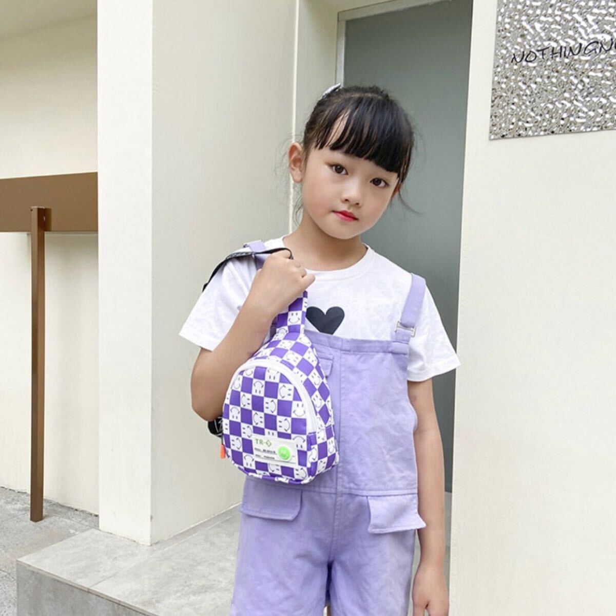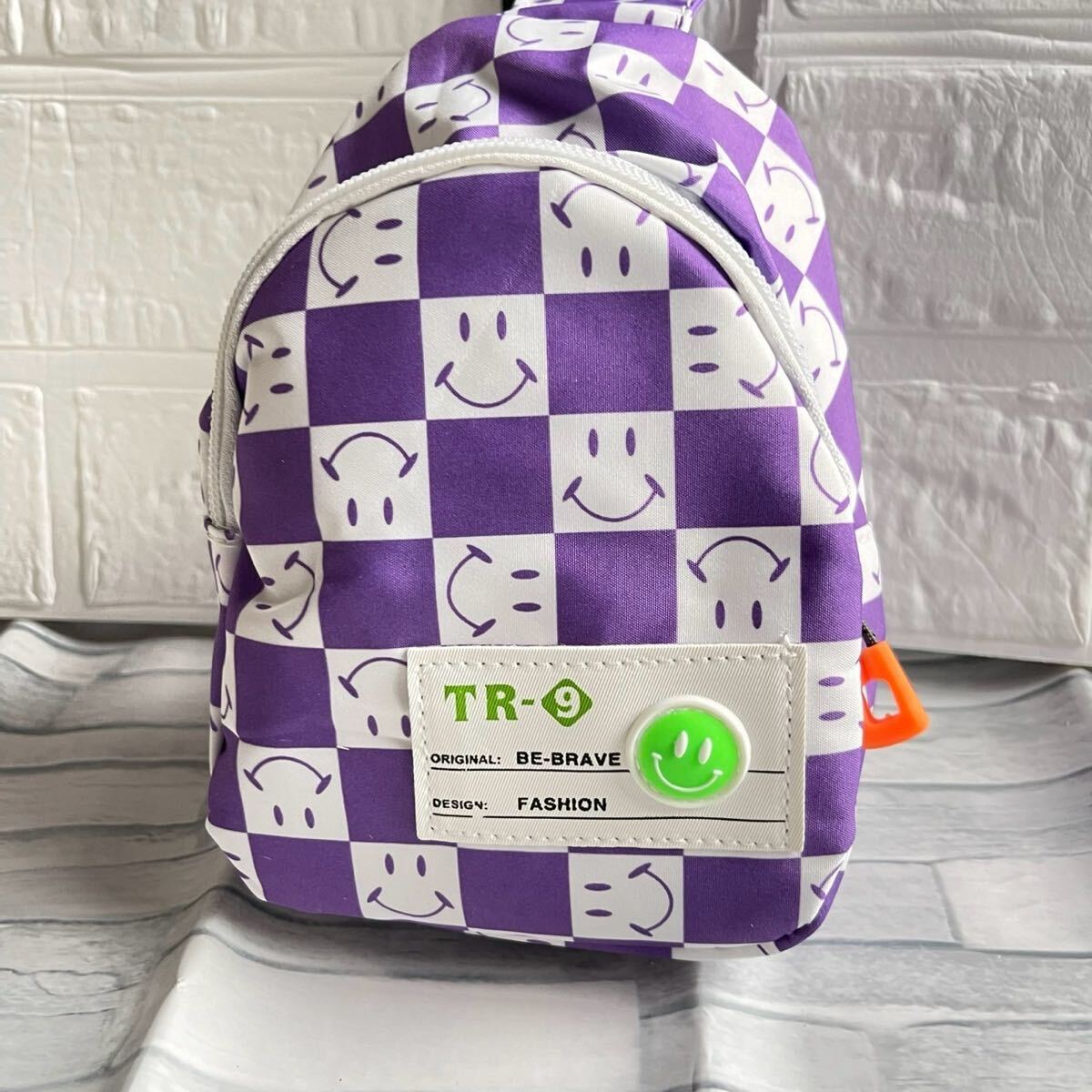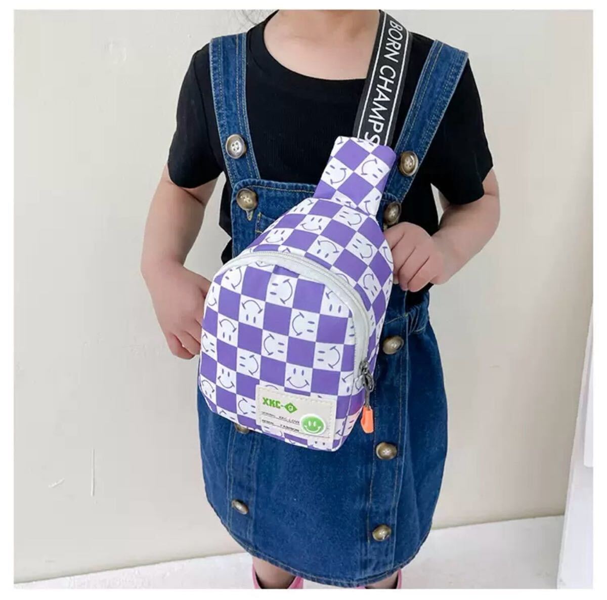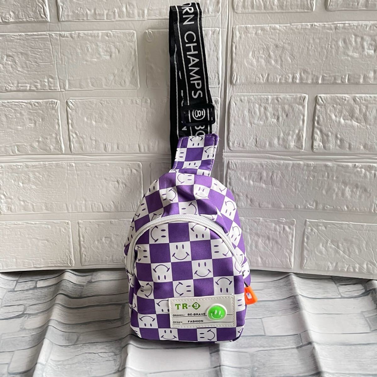 チェック柄にスマイルフェイスがポップで楽しいボディバッグです。軽量で丈夫なナイロン製ですので耐久性があります。
