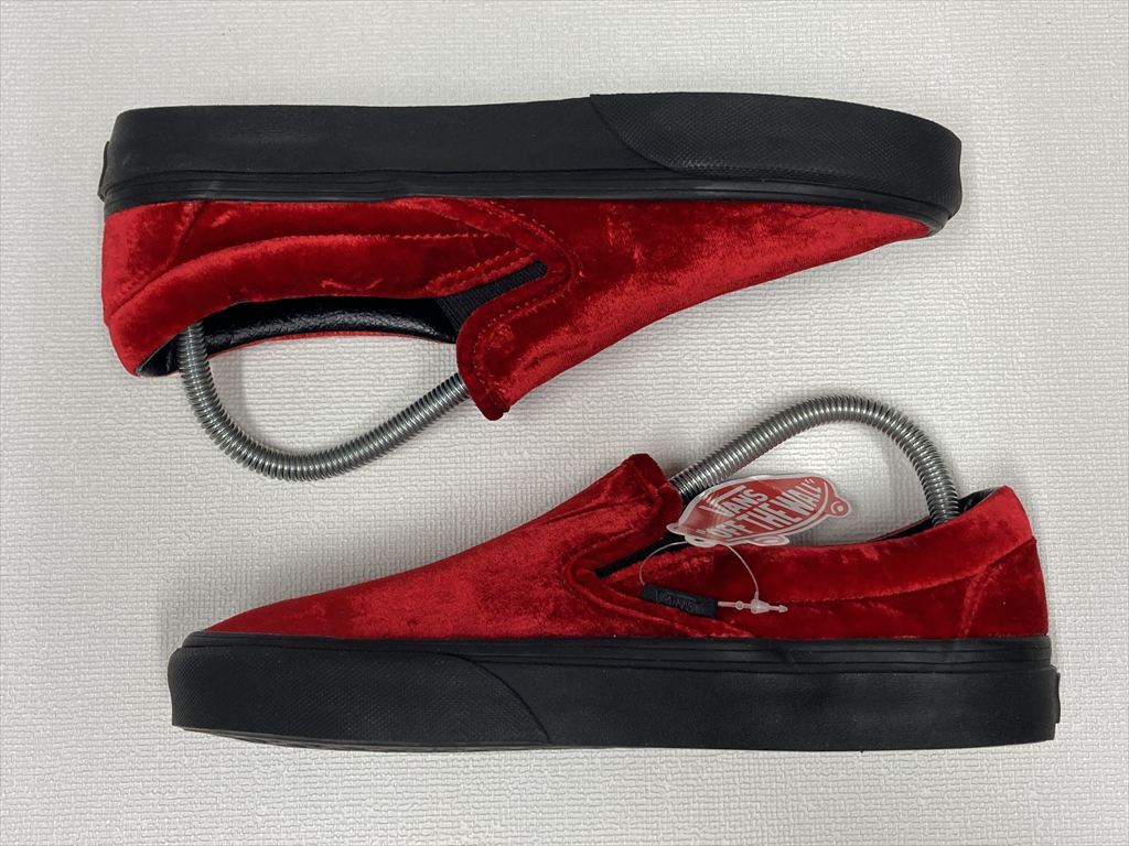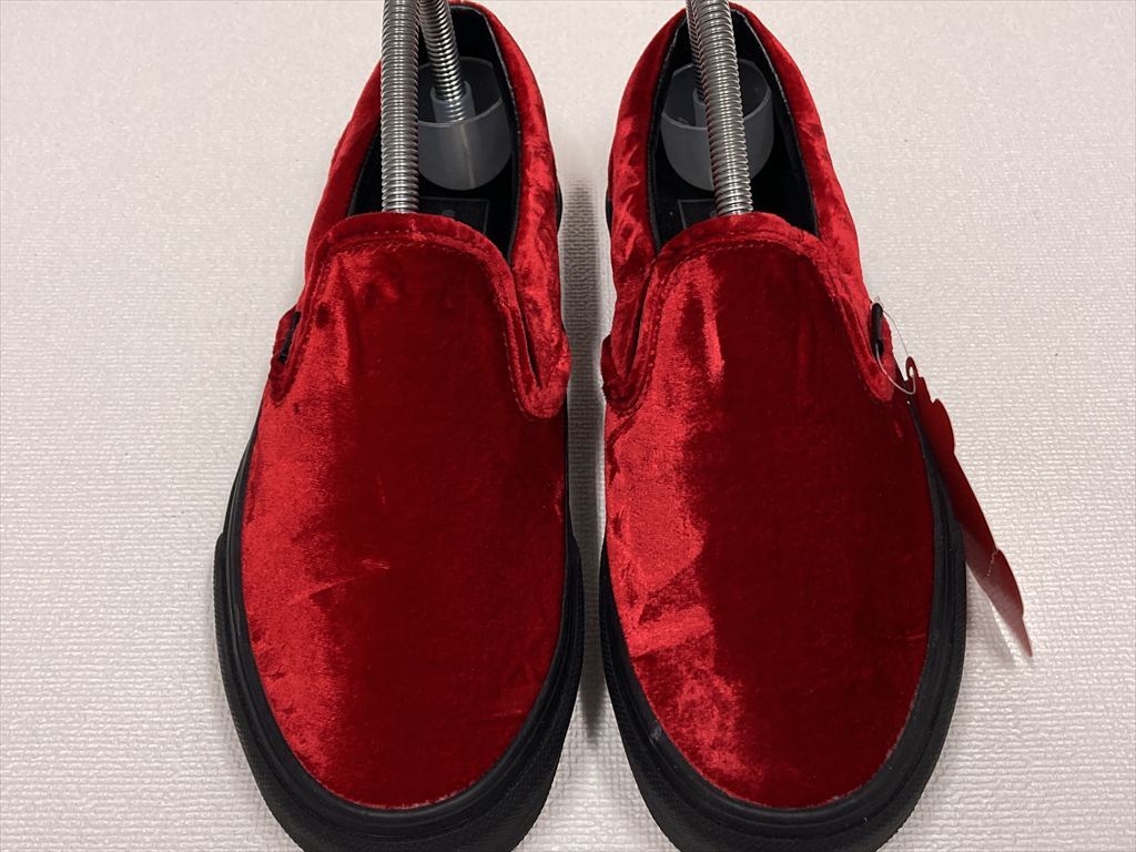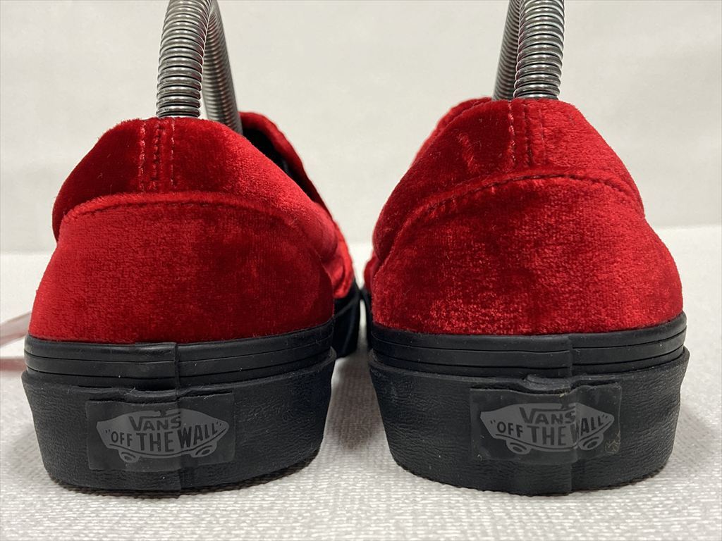 レアモデル!! VANS スリッポン 赤x黒ソール ベルベット ブラック US6 (24cm) SLIPON アメリカ企画限定!! バンズ