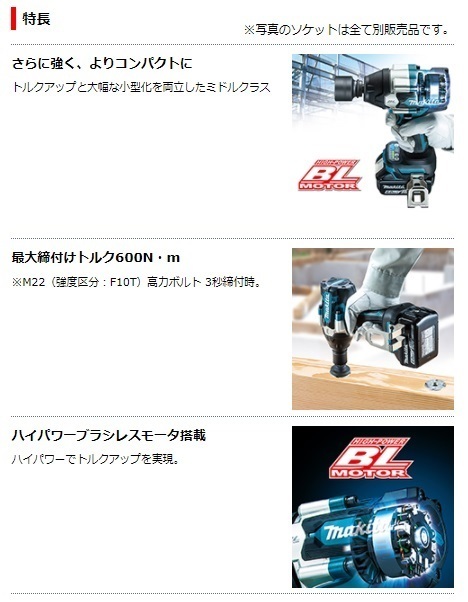 マキタ TW700DZ(本体のみ)(バッテリ・充電器・ケース・ソケット別売)18V 充電式インパクトレンチ