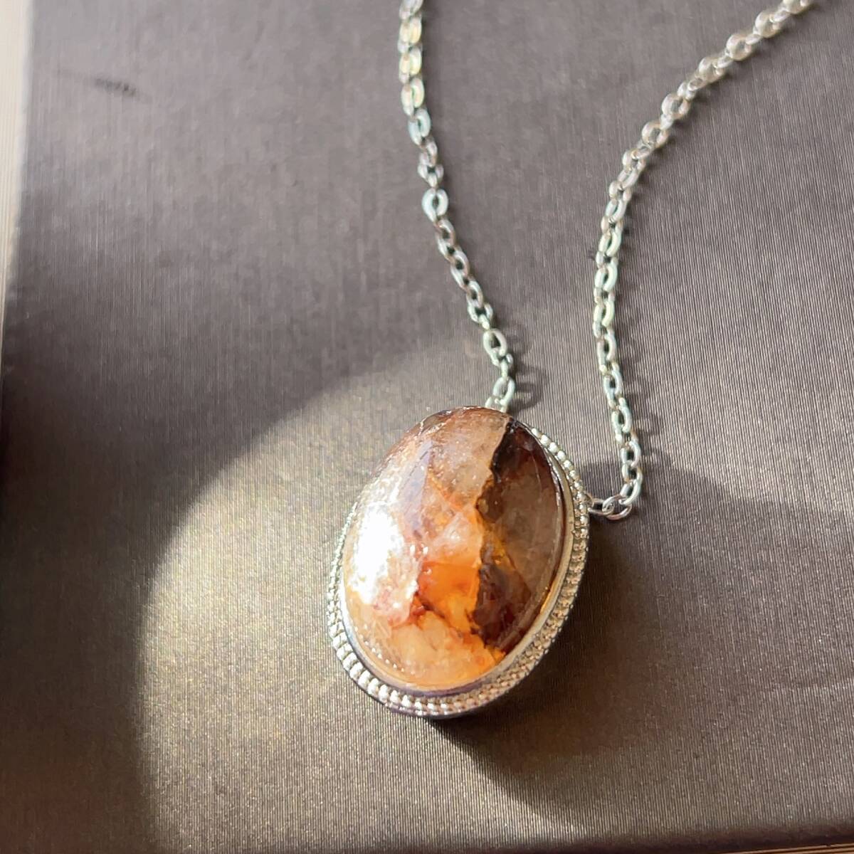 訳あり◇タンジェリン・クォーツ◇パワーストーン◇ネックレス ペンダント◇水晶◇天然石◇巾着袋付き◇プレゼントにも036P3205