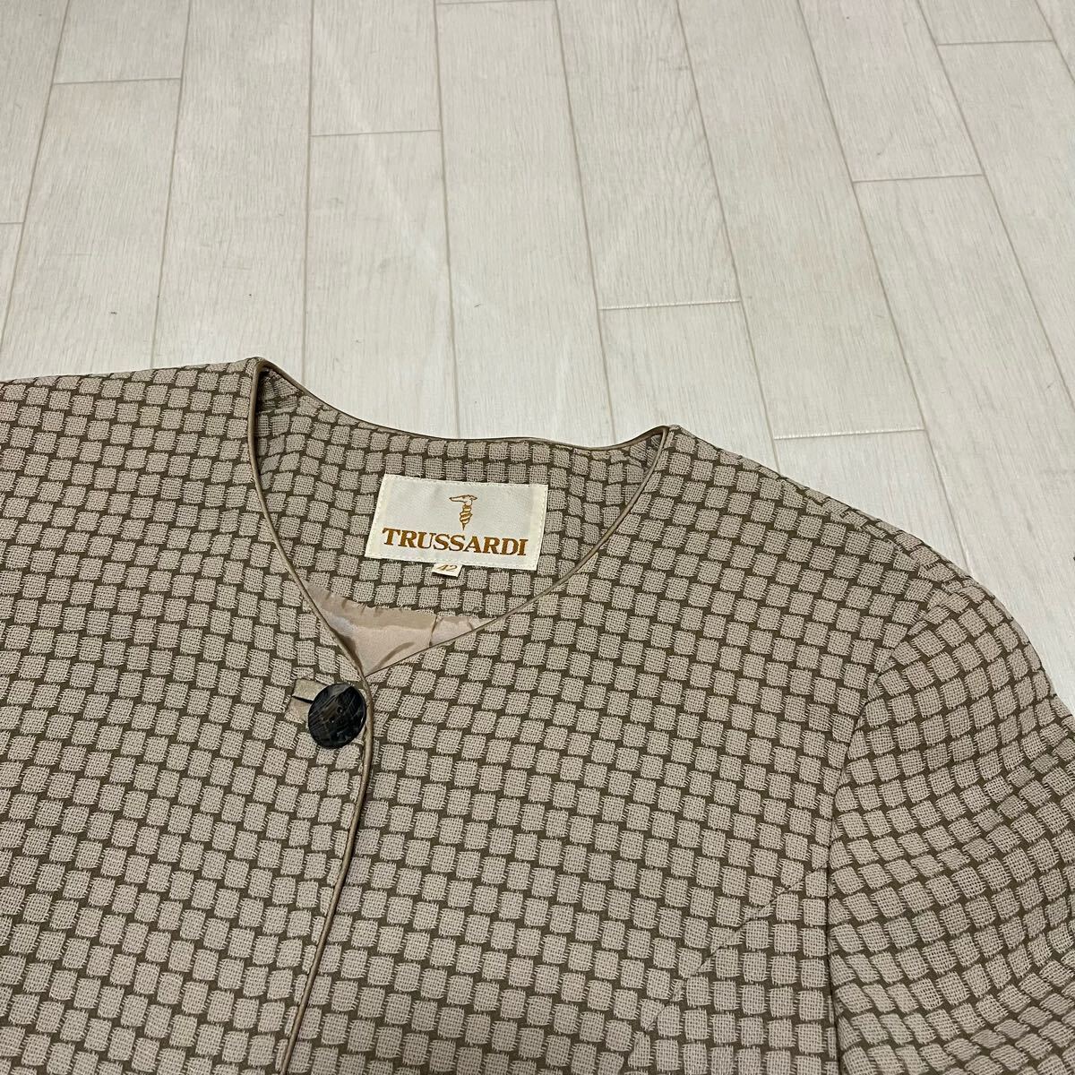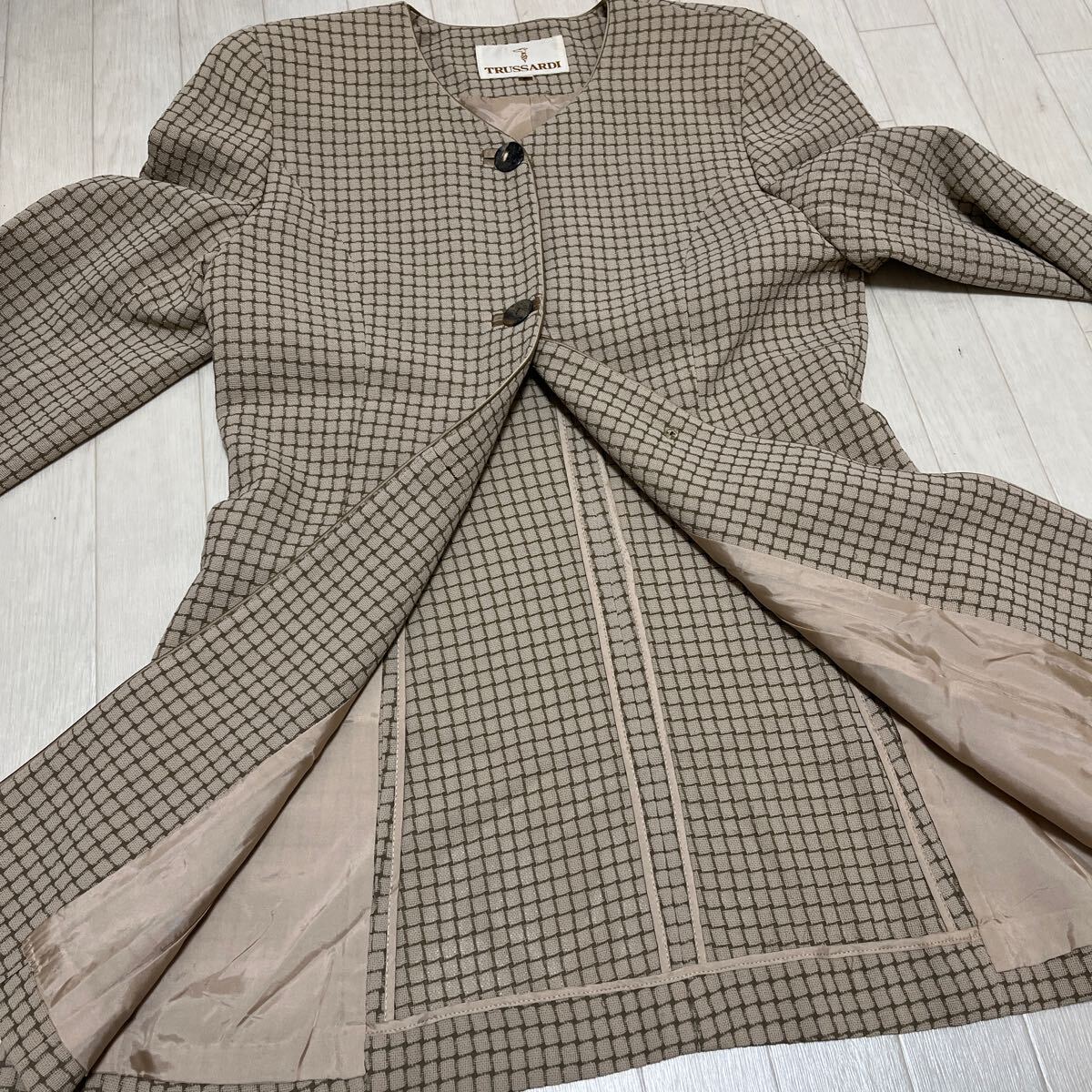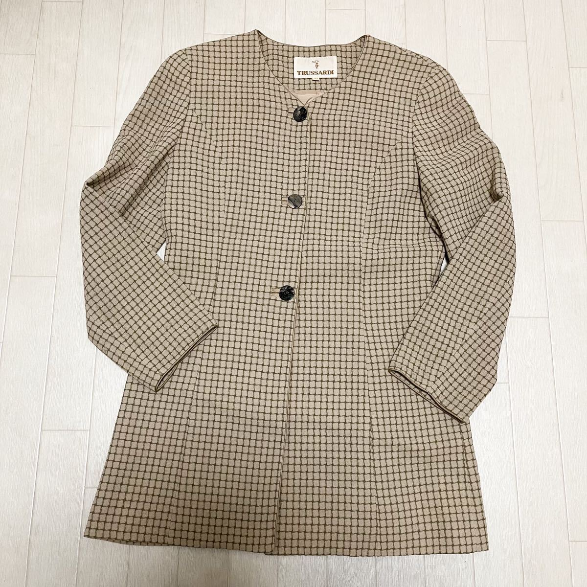 和685★ TRUSSARDI トラサルディ ノーカラーコート セミロングコート 42 ベージュ レディース