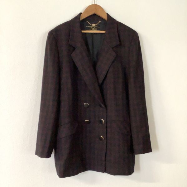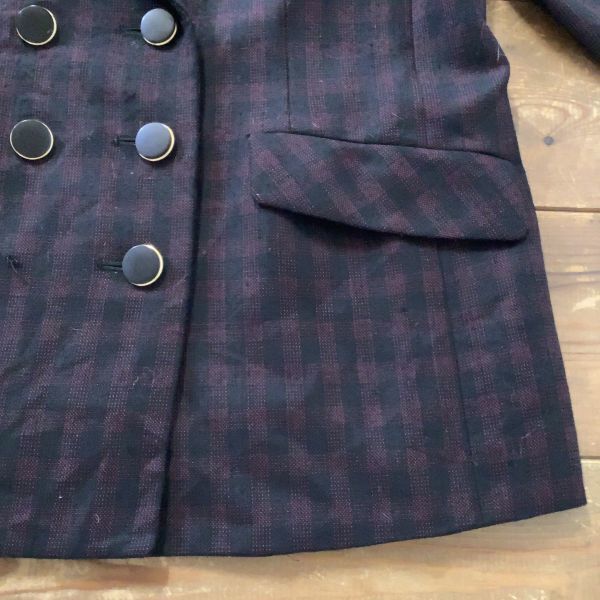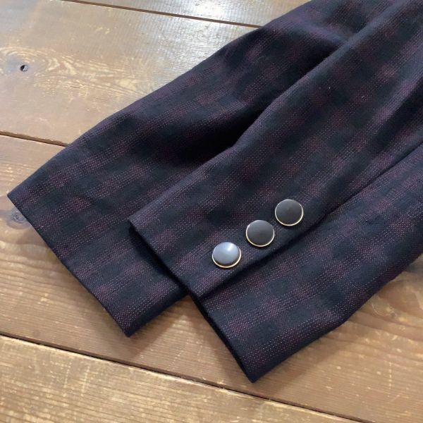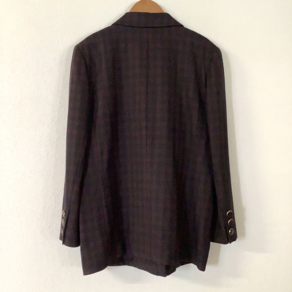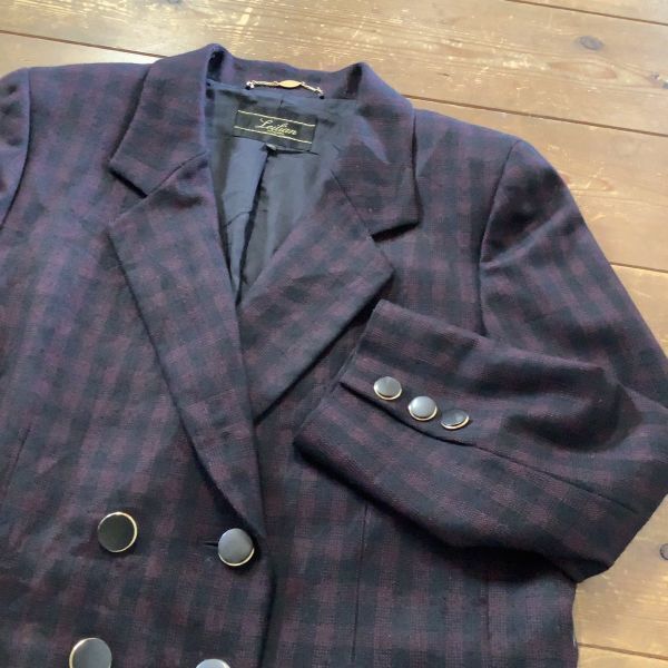 【上品なカラーリング】Leilian レリアン タータンチェック ウール ダブル ジャケット レディース 大きいサイズ 13号 ボルドー ブラック