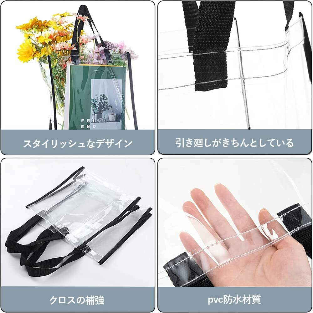 【素材】質感の良いエコ透明PVC素材を使用、ナイロン製の持ち手は補強されており、丈夫で耐久性があり、防水性があり、雨が降っても大丈夫です。(※PVC素材は開封すると少しにおいがするので、散ってもいいです。)