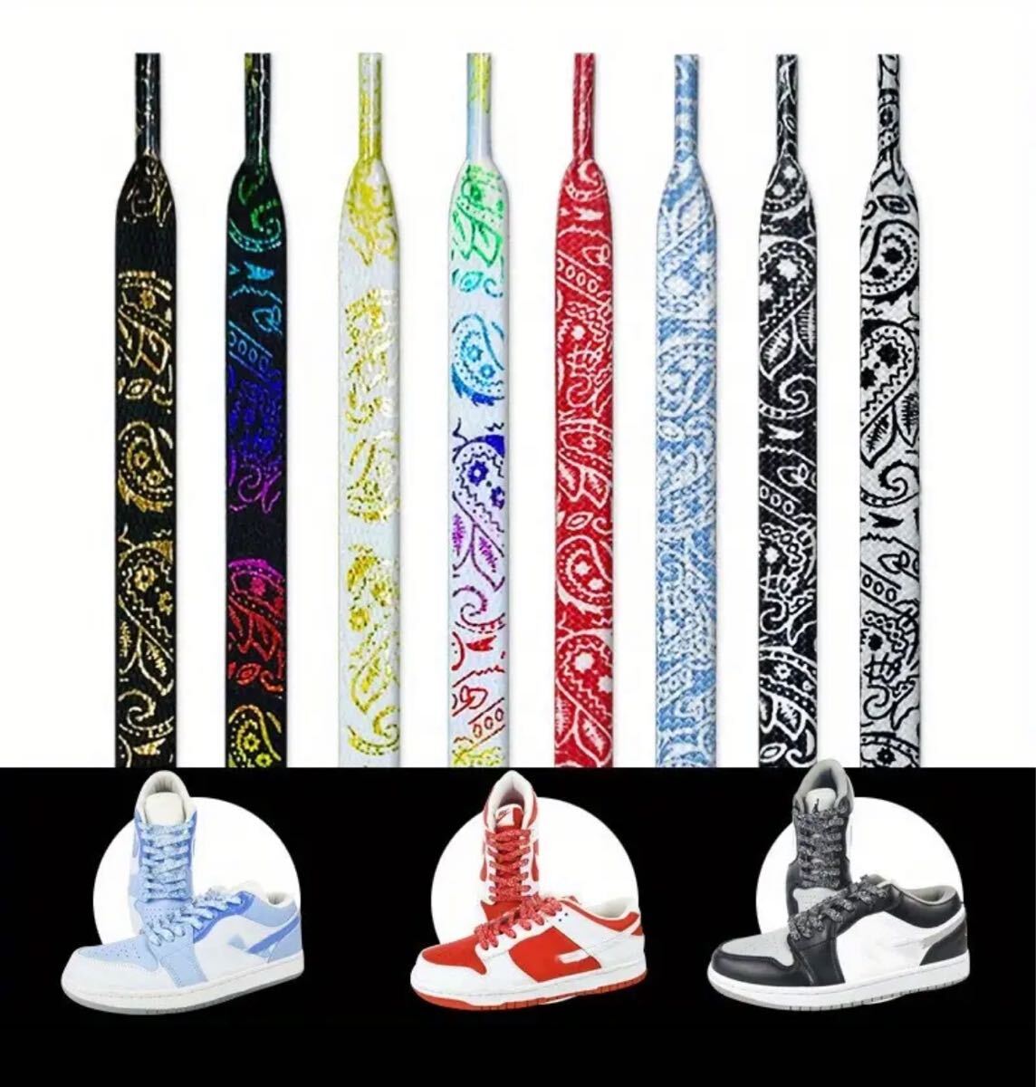 ペイズリー柄 靴紐 140cm GOODTIME ブラック