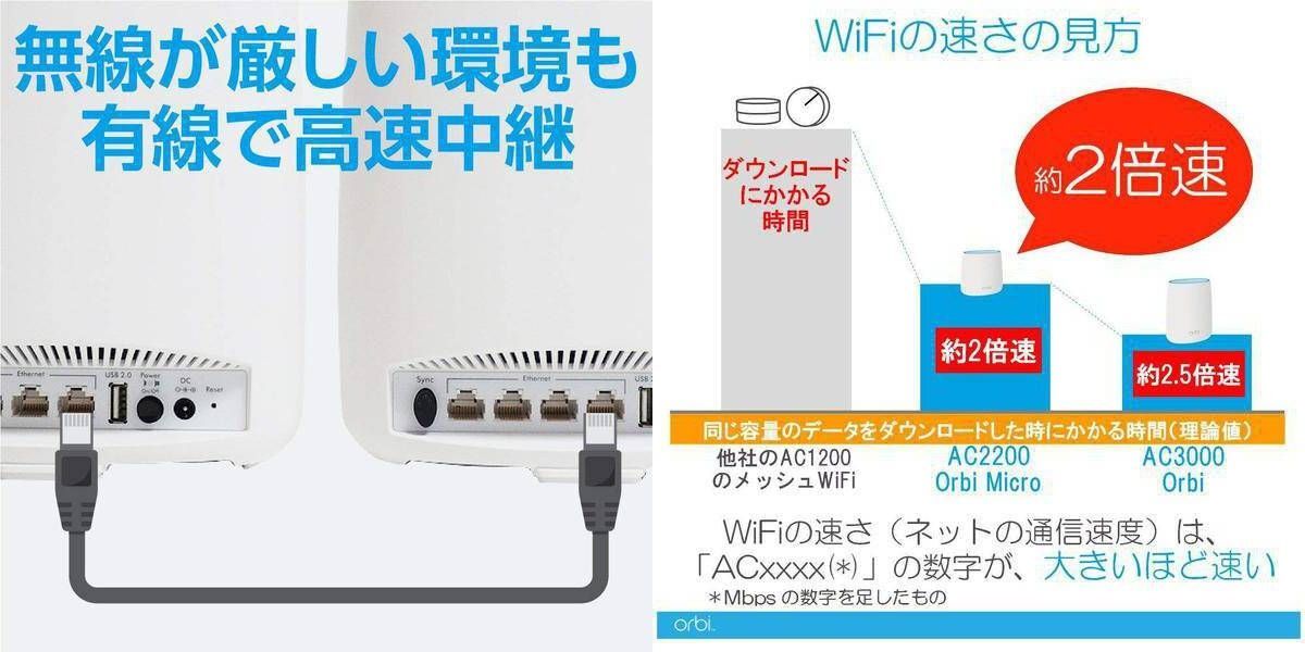 | 商品説明 | NETGEAR(ネットギアジャパン) ルーター単体 RBR20-100JPS [トライバンドメッシュWiFiシステム/Orbi Micro 866+866+400Mbps] です。 大手家電量販店購入の新品です。(在庫2) 価格は1個当たりの値段になります。 即決です。消費税はかかりません。 ◆製品 ■トライバンドメッシュWiFiはOrbi トライバンドWiFiなら専用のバックホール通信を使用するので たくさん接続しても快適な通信を維持します。 ■移動しても通信が途切れない メッシュWiFiはWiFiの繋ぎなおし不要なのでお部屋を移動しても途切れません。 ■簡単設置&簡単セットアップ PCや専用アプリで簡単にセットアップ。 カバー範囲の拡張もサテライトの追加で簡単に行えます。 ■お子様にも安心 Orbiは「Circle with Disney」アプリに対応。 有害なサイトやアプリからお子様を守ります (※Circle with Disneyは一部機能の利用に料金が発生します) [仕様] ●WiFi規格:802.11ac/n/a/g/b ●通信速度:866 + 866 + 400 Mbps ●対応チャネル (5GHz)*:W52 (36~48), W53 (52~64), W56 (100~140) ●対応チャネル (2.4GHz):1~13 ●WiFi範囲:10m2(1ユニット) ●接続推奨:最大15台(1ユニット) ●ギガビットポート:インターネット × 1, LAN × 1 ●ビームフォーミング:○ ●MU-MIMO:○ ●ローミング規格:802.11k, 802.11v ●ペアレンタルコントロール:Circle with Disney ●本体サイズ(mm):142.2 × 60.9 × 167.6( 1ユニット) ●本体重量:476.2g( 1ユニット) ●セット内容:Orbi Microルーター本体 x1 |
